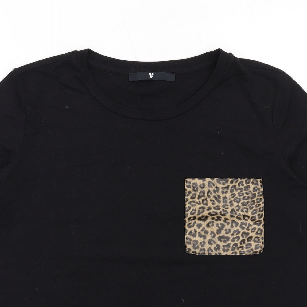 Womens Black Cotton Basic T-Shirt Size 12 Round Neck