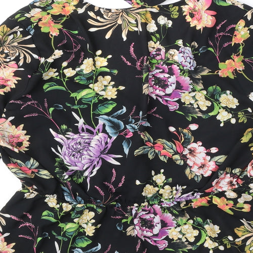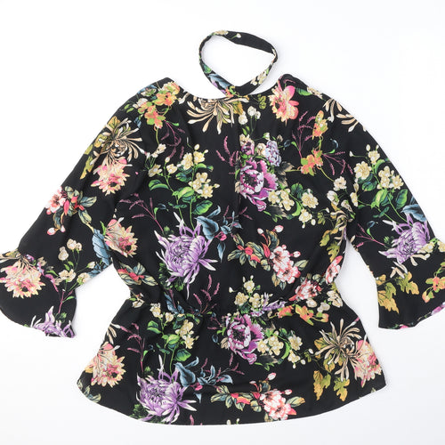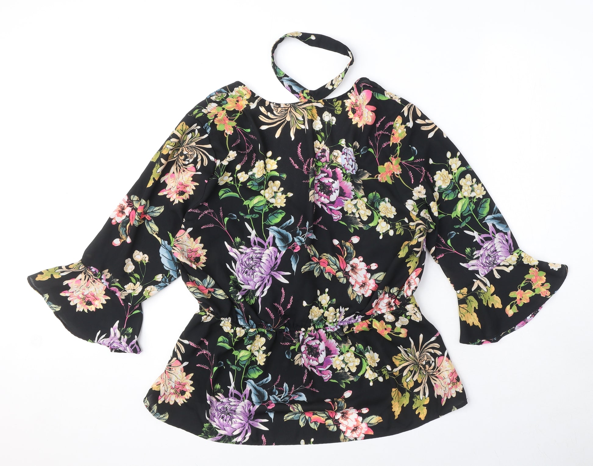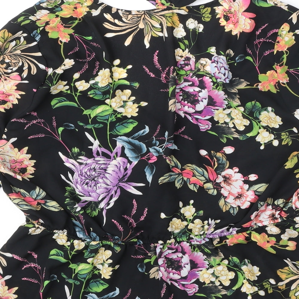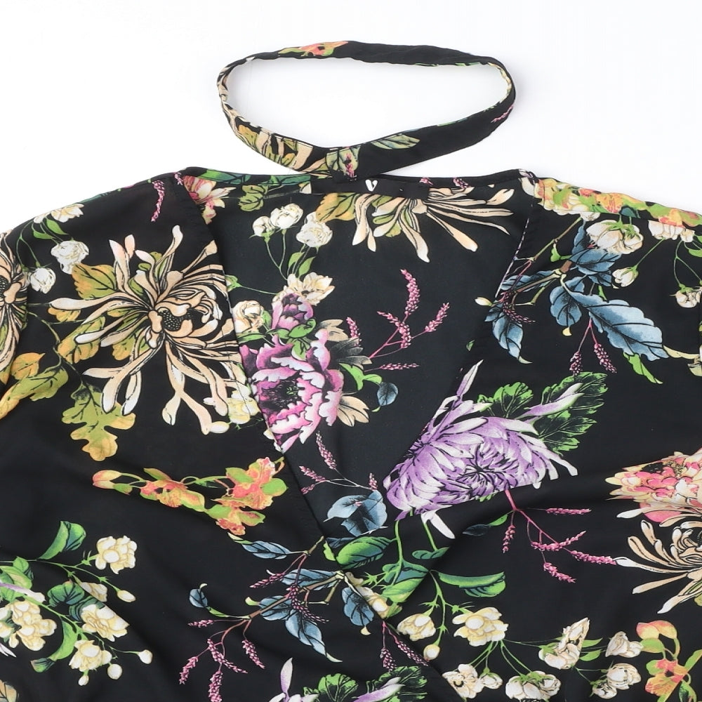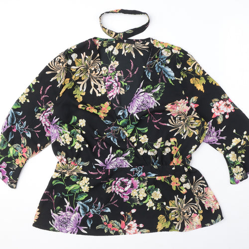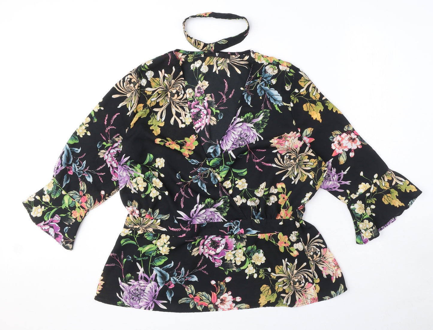 Womens Black Floral Polyester Wrap Blouse Size 16 V-Neck - Neck Choker Detail