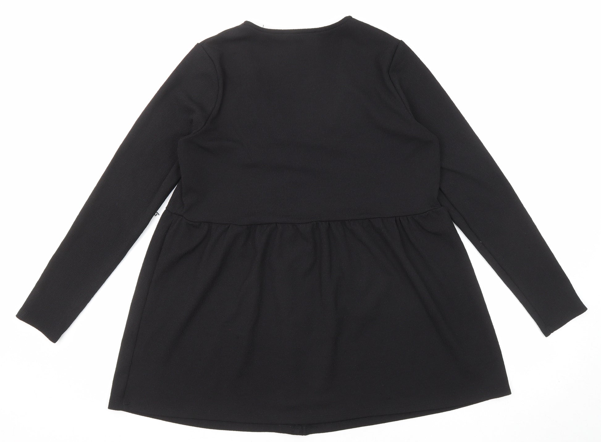 Womens Black Polyester A-Line Size 14 V-Neck Pullover