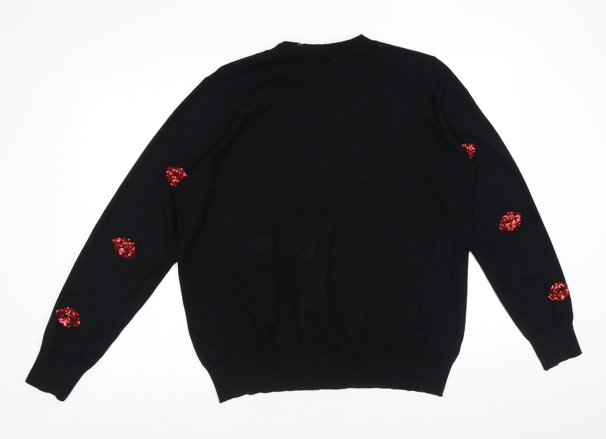 Womens Black Round Neck Geometric Viscose Pullover Jumper Size 18 - Lip pattern