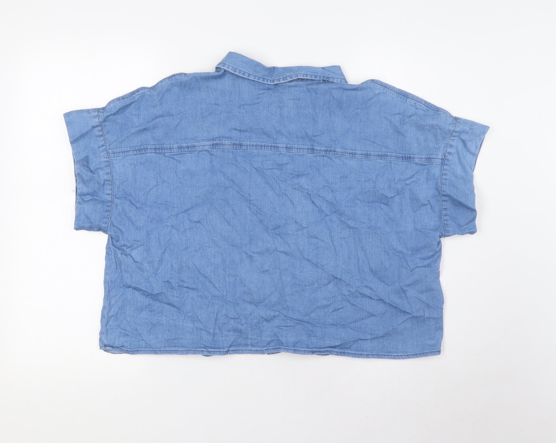 Womens Blue Cotton Basic Button-Up Size 12 Collared