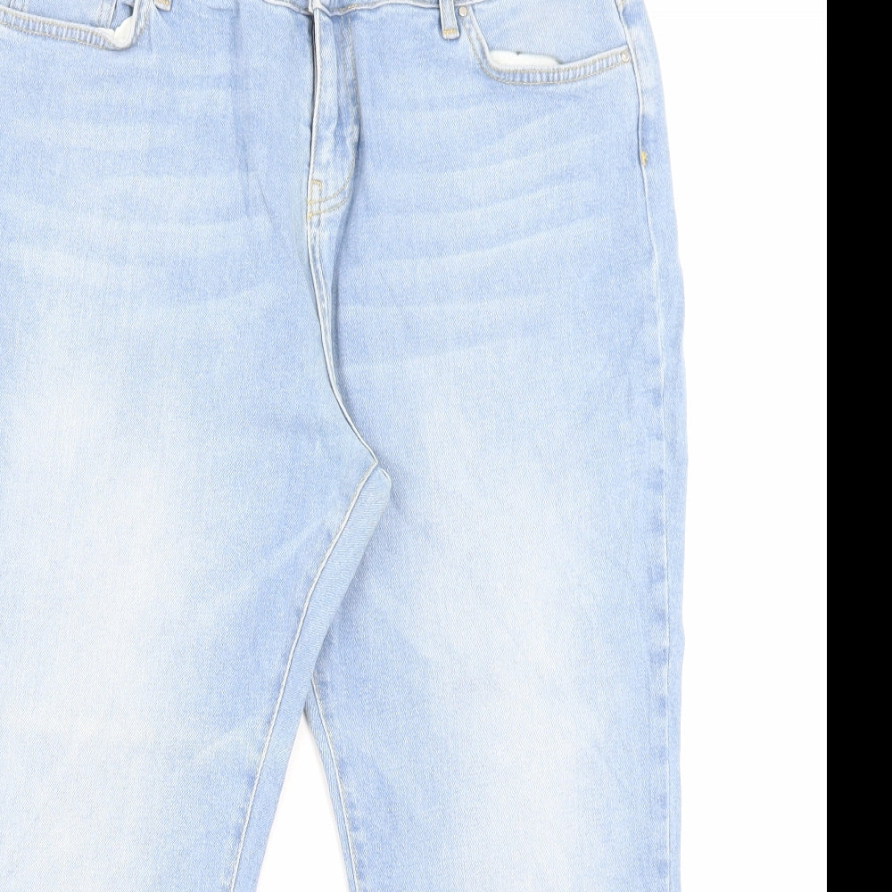 Womens Blue Cotton Straight Jeans Size 16 L25 in Regular Button
