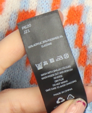 Add effortless retro charm to your wardrobe with this stylish blue knit cardigan from Very. Designed for women, this size 10 cardigan combines comfort and classic appeal with its soft, stretchable fabric blend of acrylic, polyamide, and elastane. The cardigan’s geometric Fair Isle-inspired pattern in vibrant orange, black, and white adds a playful vintage twist, while the flattering V-neckline and button-front design ensure a timeless silhouette that can be styled for any casual occasion. The cardigan features comfortable long puff sleeves with ribbed cuffs and hem for a secure fit that keeps you cosy through the cooler seasons. Lightweight yet warm, it’s perfect for layering during autumn, winter, and spring, whether worn over a crisp shirt for workwear or paired with jeans for effortless everyday chic. The knit fabric ensures a comfortable, breathable wear, and the gentle stretch provides flexibility without losing shape. This versatile piece is machine washable for easy care and designed to suit both relaxed and contemporary wardrobes. With its eye-catching geometric design and quality craftsmanship, this Very cardigan is a wardrobe essential that balances boldness and comfort beautifully. In very good pre-loved condition with only minimal signs of gentle wear, it’s ready to bring a pop of colour and Scandinavian-inspired style to your outfits. A must-have for those who value texture, warmth, and effortless style, this cardigan works beautifully layered over tops and dresses alike. Pick it for laidback brunches, cosy evenings, or casual workdays where comfort meets personality — a perfect piece for elevating your look with a hint of playful warmth.