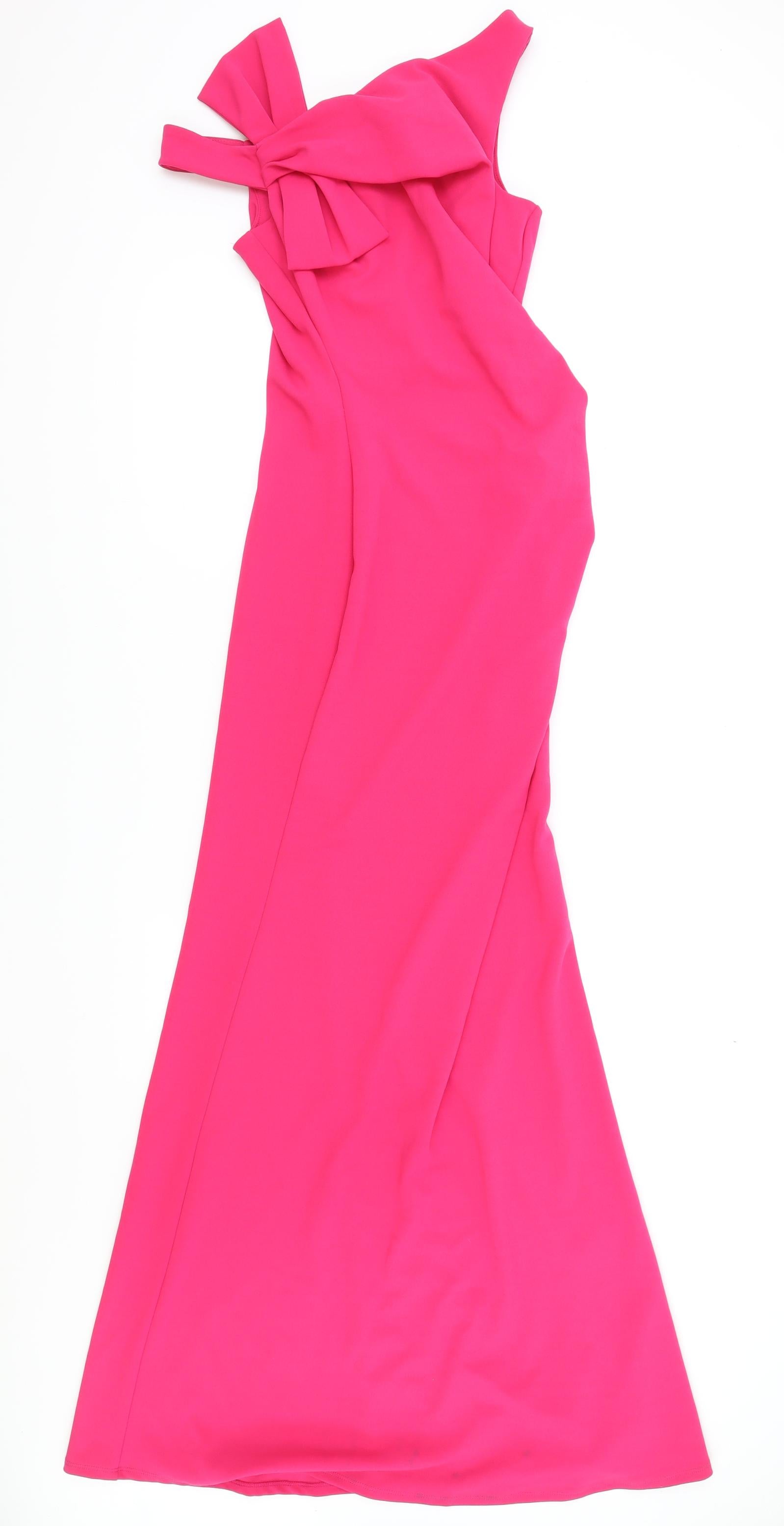 Womens Pink Polyester Ball Gown Size 8 V-Neck Zip