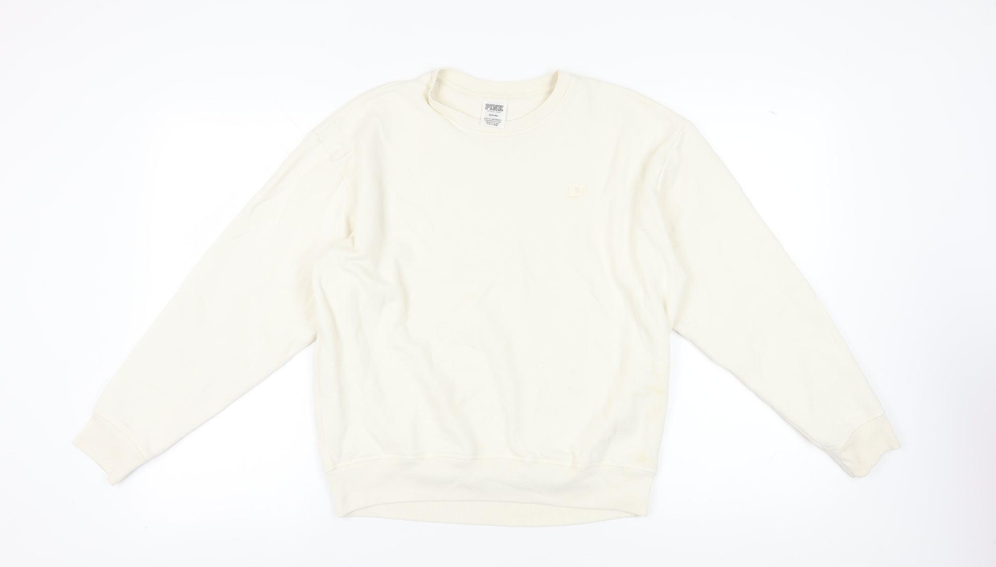 This elegant Victoria's Secret pullover sweatshirt is an essential addition to your casual wardrobe. Rendered in a soothing beige colour and crafted from a soft jersey fabric, it promises both comfort and style. The material composition of 60% cotton and 40% polyester ensures durability and a comfortable fit for all-day wear. Designed for the modern woman, this regular-fit sweatshirt with its crew neckline and long sleeves is perfect for layering or wearing alone during any season. Its easy-care design makes it machine washable, allowing for hassle-free maintenance. Although the condition is noted as excellent, there are faint marks on one sleeve, which do not detract from its overall stylish appeal. Whether you're lounging at home or heading out for a casual day, this Victoria's Secret sweatshirt is your go-to. Priced competitively, it combines quality with affordability, making it an irresistible choice for any fashion-conscious individual.
