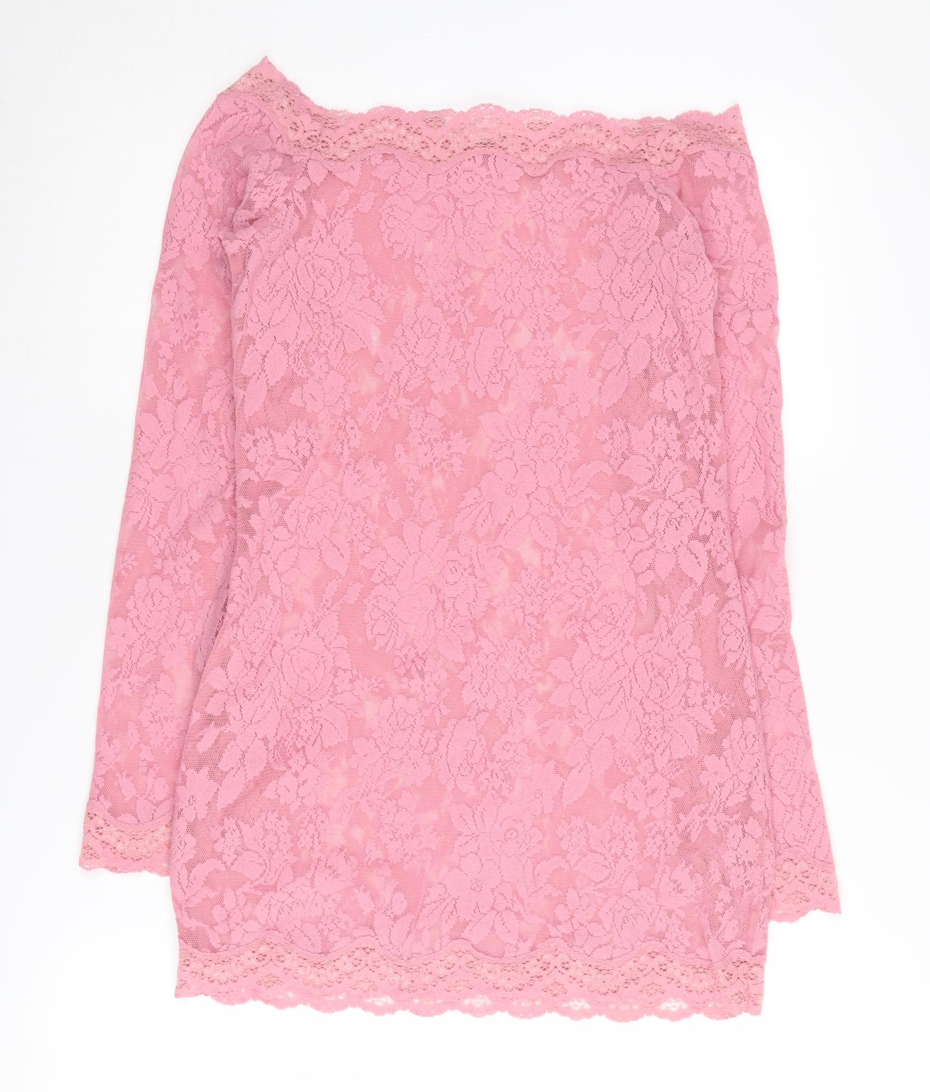 Discover elegance with Victoria's Secret's enchanting pink lace dress, perfect for any occasion. Crafted from comfortable nylon, this piece features an alluring off-the-shoulder neckline and long sleeves. Its luxurious lace fabric is delicately detailed, making it a standout choice for fashion-forward women. Ideal for both casual and formal settings, pair it with your favourite accessories to complete the look. Available now in size M.