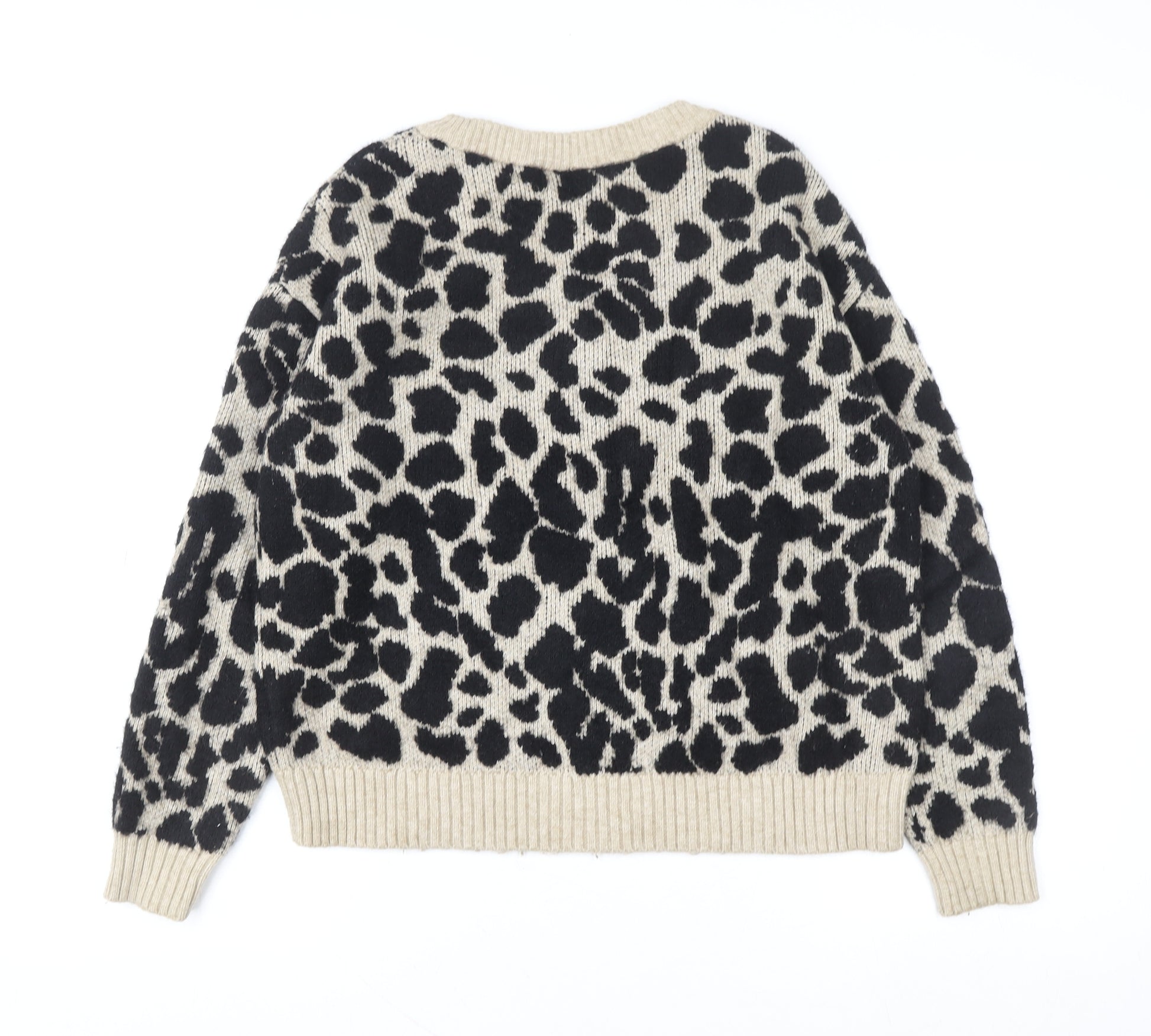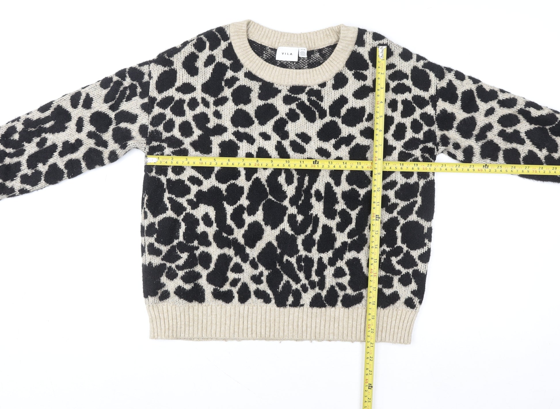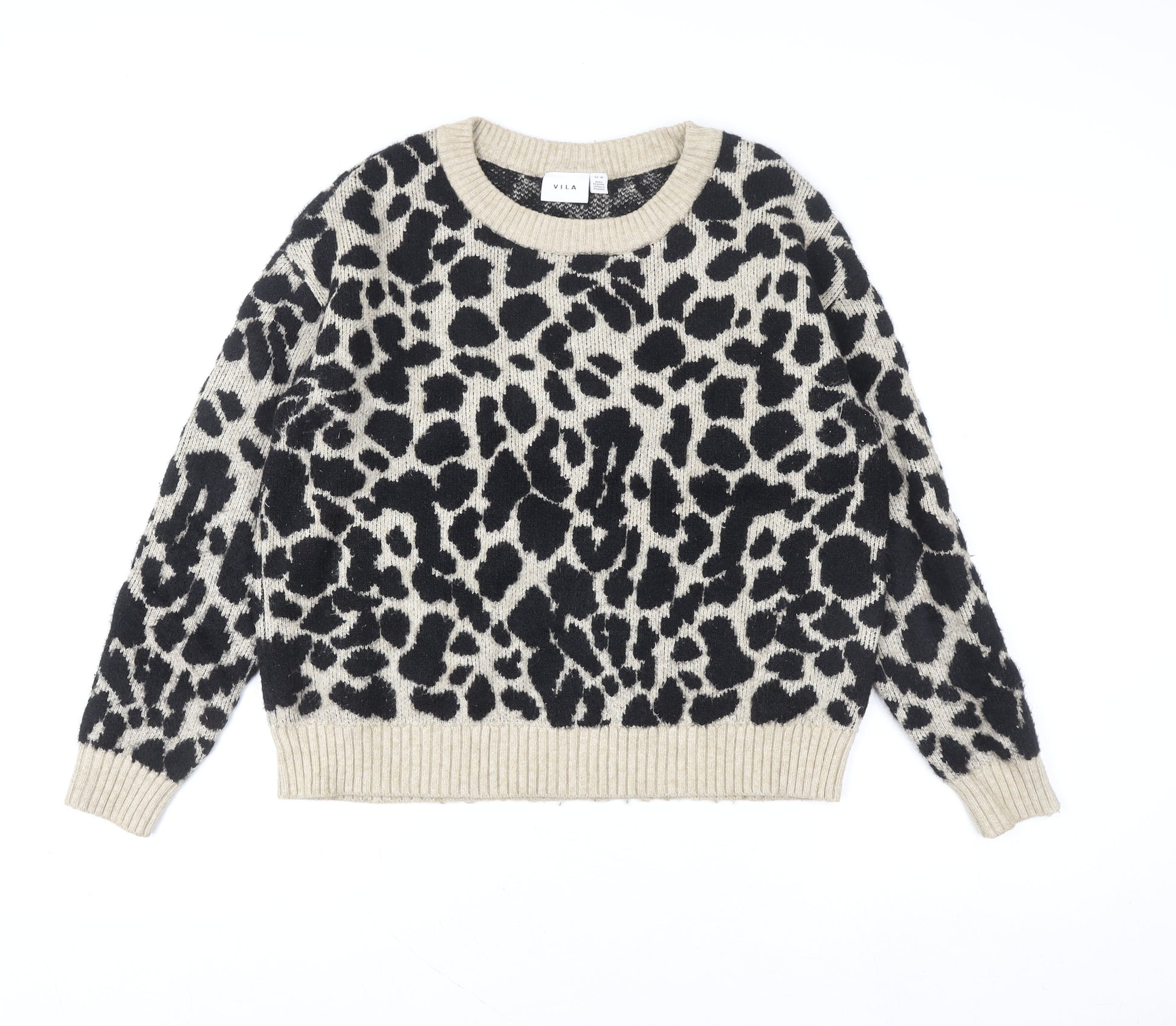 Vila Women’s Beige Leopard Print Crew Neck Pullover Jumper Size 12