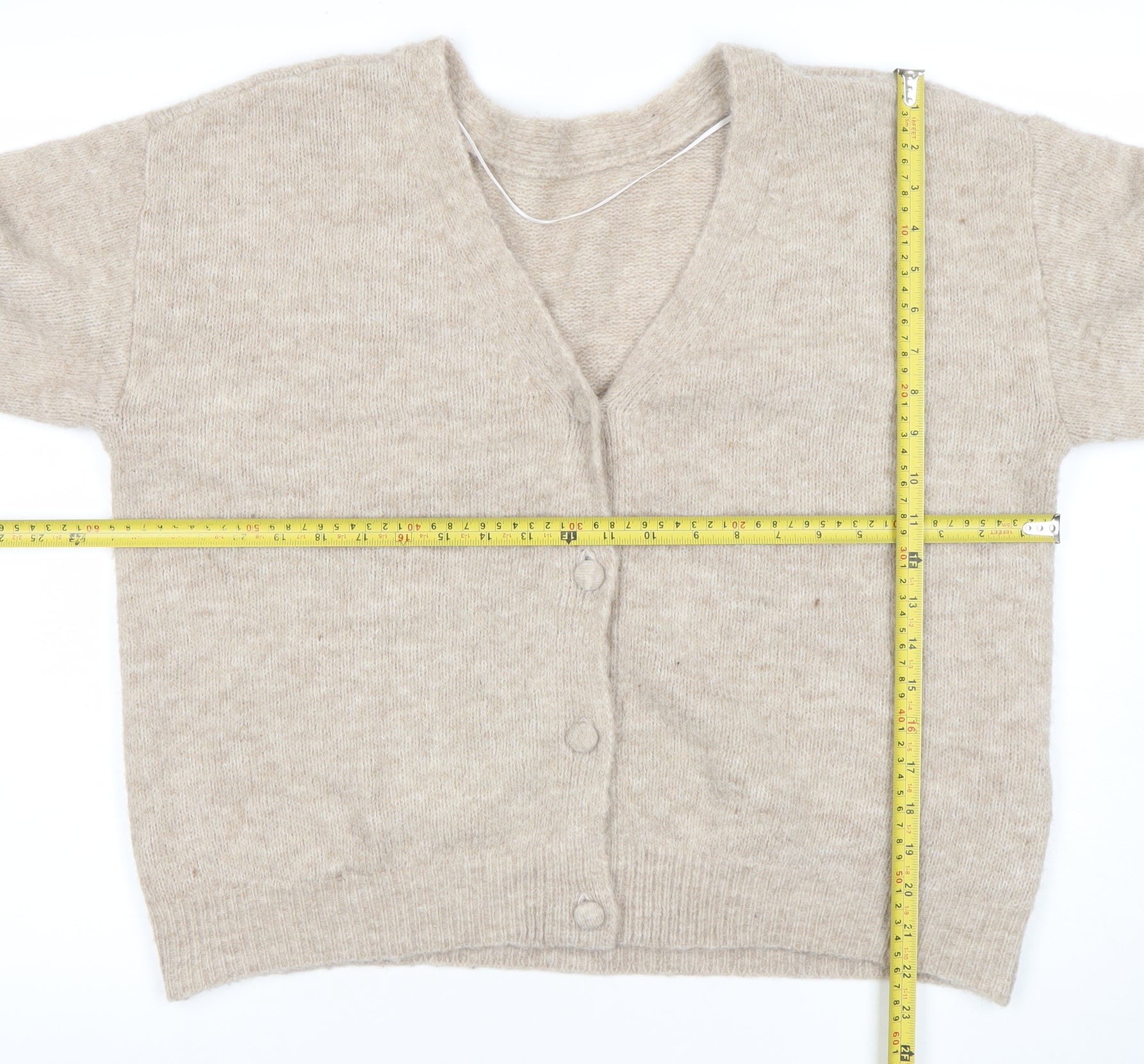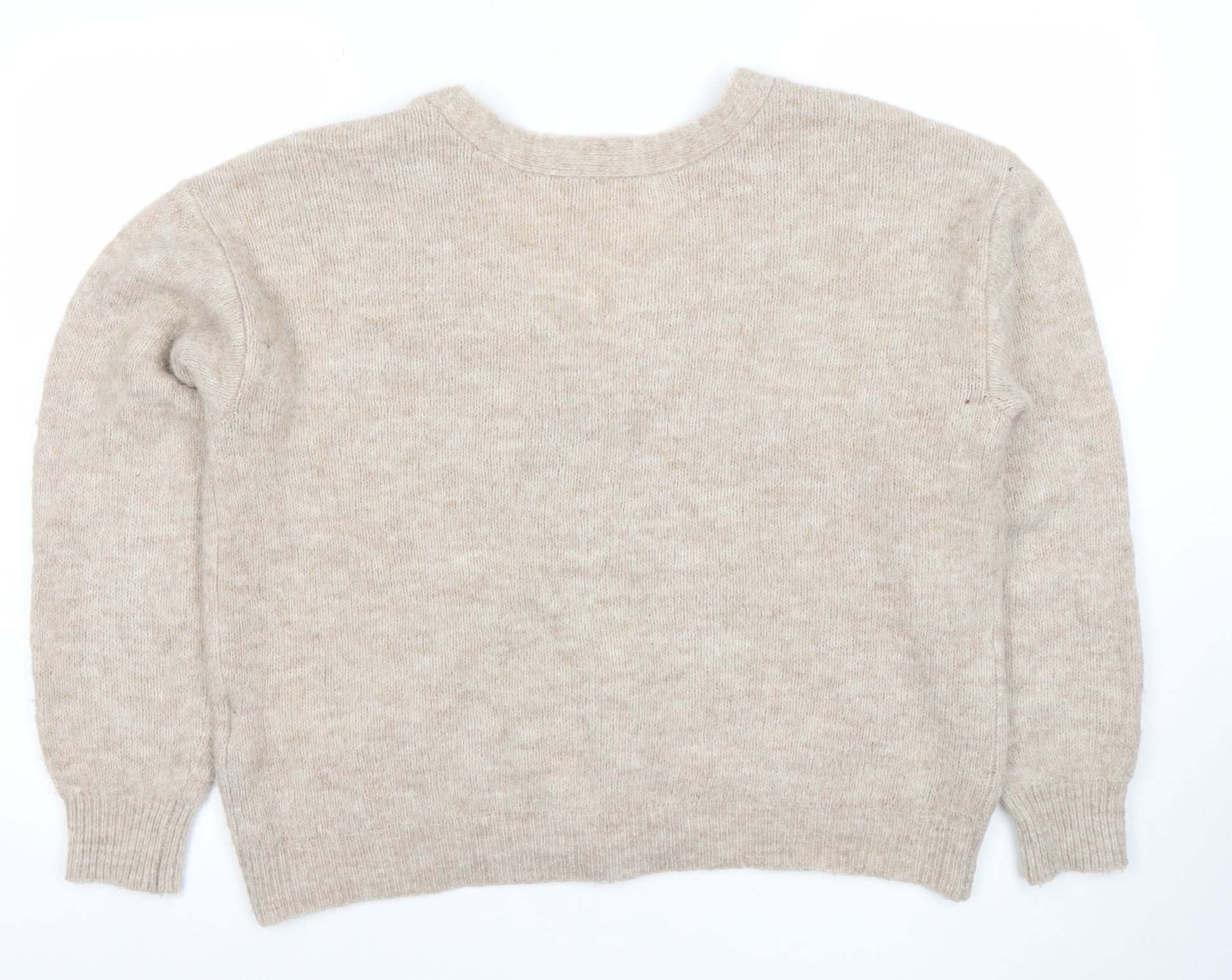 Stay effortlessly stylish and cosy with this VILA women’s beige cardigan, expertly crafted in a soft and warm blend of polyamide, wool, and alpaca with a touch of elastane for added comfort and flexibility. Designed for an easy, relaxed fit, this regular-sized L cardigan combines understated Scandinavian chic with timeless appeal. The natural beige tone offers an elegant and versatile look that pairs beautifully with jeans, dresses, or tailored trousers. Its V-neckline and button fastening create a flattering silhouette suitable for layering over shirts and tops, making it a wardrobe essential from autumn through winter. The finely knit texture adds to the cardigan’s luxurious softness while maintaining a lightweight, breathable feel perfect for everyday wear. Ribbed cuffs and hemline enhance shape retention, ensuring it keeps its neat fit. Ideal for casual and relaxed occasions, this VILA piece embodies minimalist style without sacrificing comfort. Though pre-owned, the item remains in excellent condition with only minor bobbling typical of delicate yarns, indicating gentle previous use without compromising overall appearance. Hand wash care ensures long life for the natural fibres, retaining softness and quality finish. Whether you’re heading to the office, lounging at home, or meeting friends for a coffee, this wool-blend cardigan offers warmth, comfort, and refined texture that transitions seamlessly between outfits and occasions. Its subtle colour and premium blend make it a timeless, easy-to-style layer that fits all seasons where a touch of warmth is welcome while maintaining an elegant look. A beautiful investment piece for effortless layering with lasting comfort and versatility.