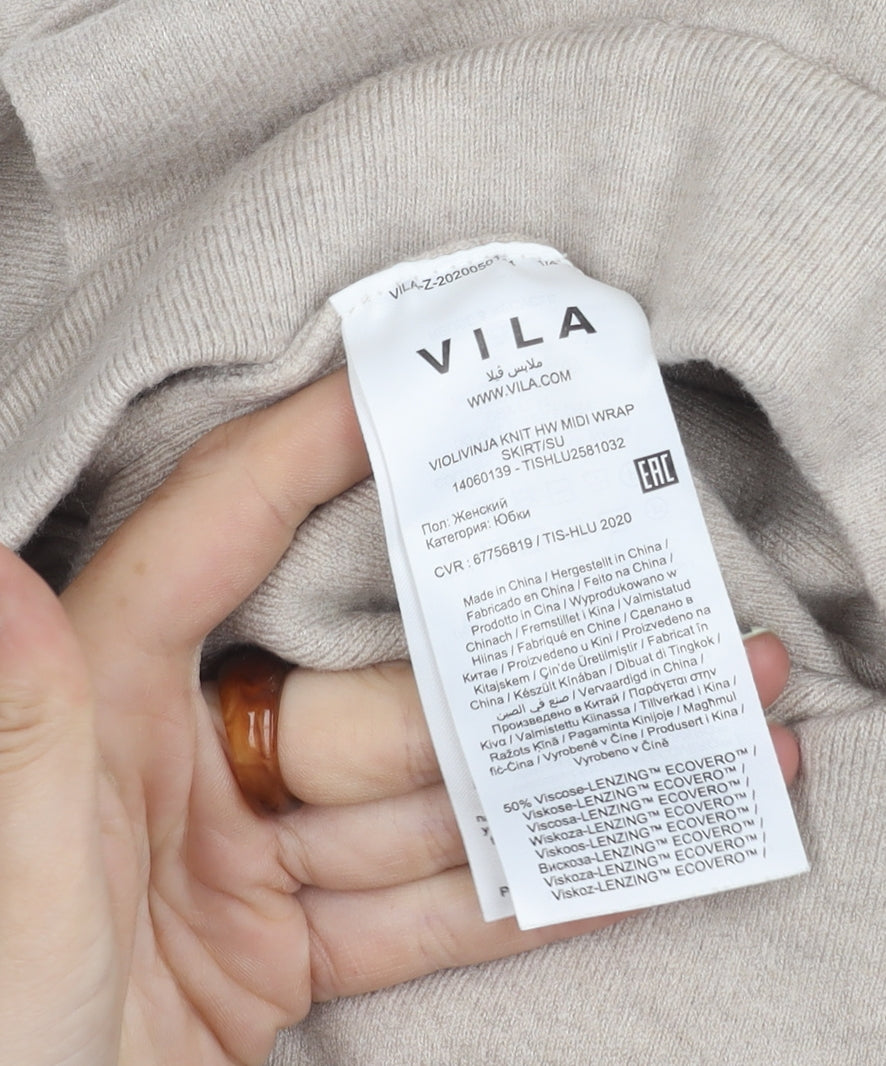 Elevate your wardrobe with this beautifully crafted VILA Women's Beige Midi Wrap Skirt. Designed to offer both comfort and style, this skirt is perfect for a variety of occasions, whether you're heading to a casual day out or a more formal gathering. The soft beige tone is versatile, ensuring it complements a range of colours and styles in your wardrobe. Crafted from quality viscose, this skirt provides a gentle, flowing silhouette that offers movement and grace. Its midi length and wrap style add a sophisticated touch, making it a standout addition to your collection. The skirt's lightweight fabric allows for wear through multiple seasons, giving you the flexibility to dress it up or down as needed. Pair it with a blouse and heels for an elevated look, or keep it casual with a simple top and sandals. Available in size S, this regular fit skirt is tailored for women who enjoy timeless elegance and comfort. Whether for a day at the office or an evening event, this VILA skirt is the ideal choice for a chic and polished ensemble.