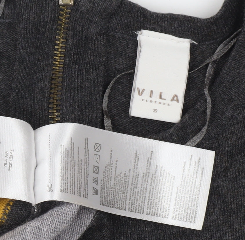 Step out in style with this exquisite Women's Geometric Bodycon Dress by Vila. Crafted for contemporary charm, it showcases a striking geometric pattern in grey and black tones, perfect for adding a modern twist to your wardrobe. This knee-length dress, designed with a flattering bodycon silhouette, enhances your natural curves, making it a versatile choice for a range of occasions. Comfort and fit are paramount, with this dress made from a premium knit fabric blend of acrylic, polyester, wool, and elastane, offering the ideal balance of warmth, stretch, and durability. The 3/4 raglan sleeves add a casual elegance, allowing for ease of movement, while the round neckline lends a sophisticated touch. Enhance your casual wardrobe with this chic piece that's perfect for autumn and winter. Vila combines fashion and function, ensuring you are dressed to impress whether you're headed to a brunch, a relaxed gathering, or even the office. The zip closure at the back adds a practical element to this stylish garment, making it easy to wear without compromising on style. Detailed with clean lines and bold patterns, it's sure to make a statement. Pair this dress with ankle boots for a day look, or dress it up with heels for an evening event. Its excellent condition ensures you're getting a high-quality piece with a minimal, gentle wear look. Add this versatile dress to your collection and embrace its effortless style – a perfect addition for those seeking comfort, warmth, and fashion-forward designs in their everyday ensemble.