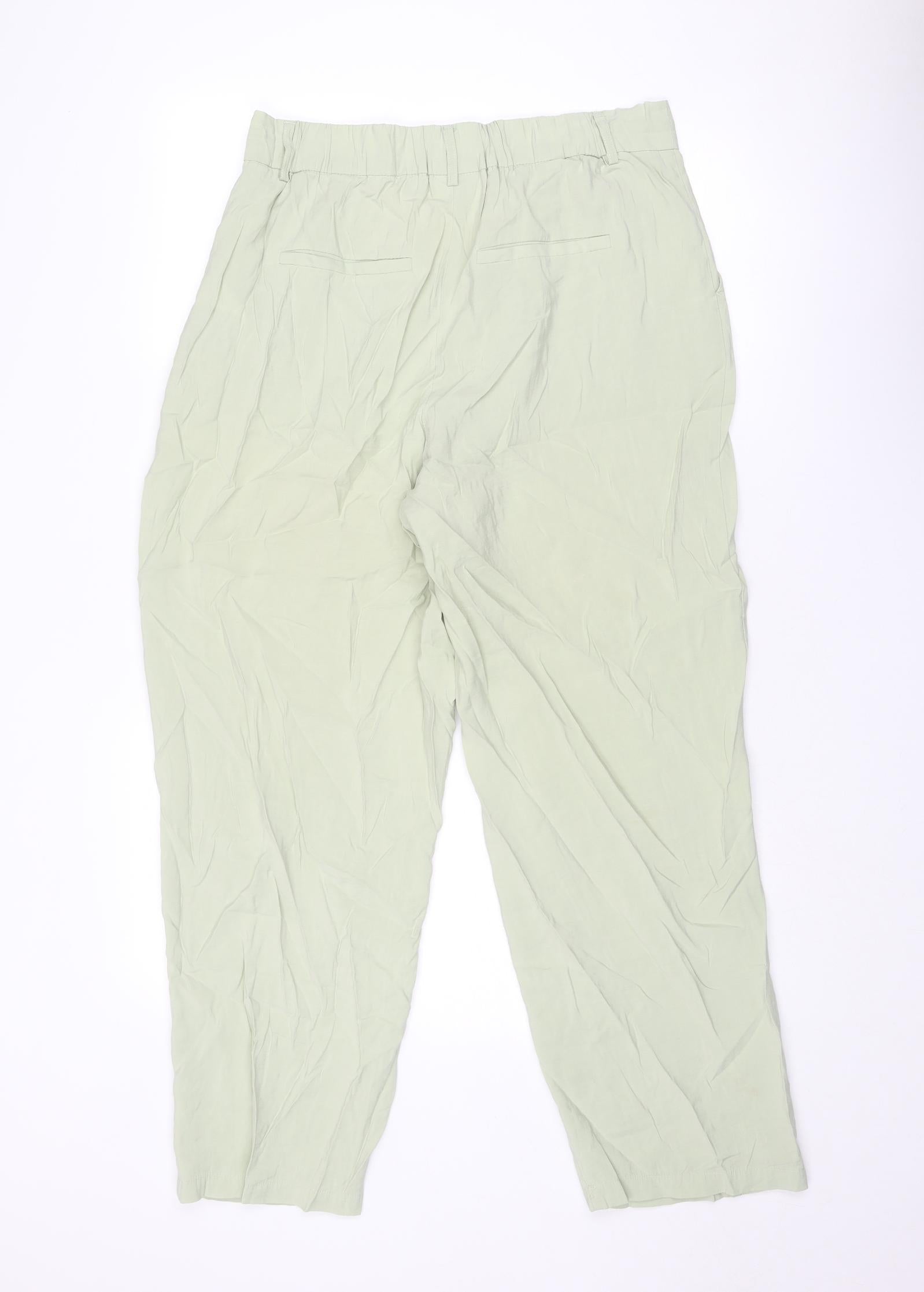 Womens Green Viscose Carrot Trousers Size 16 Regular Zip
