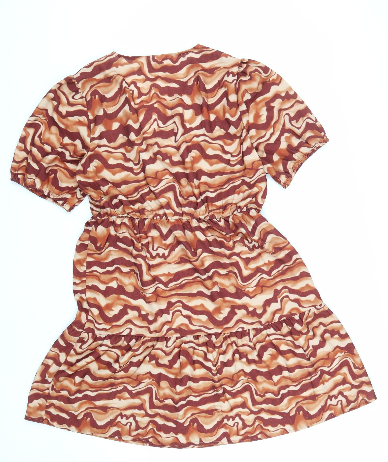 Womens Multicoloured Geometric Polyester Fit & Flare Size XL V-Neck