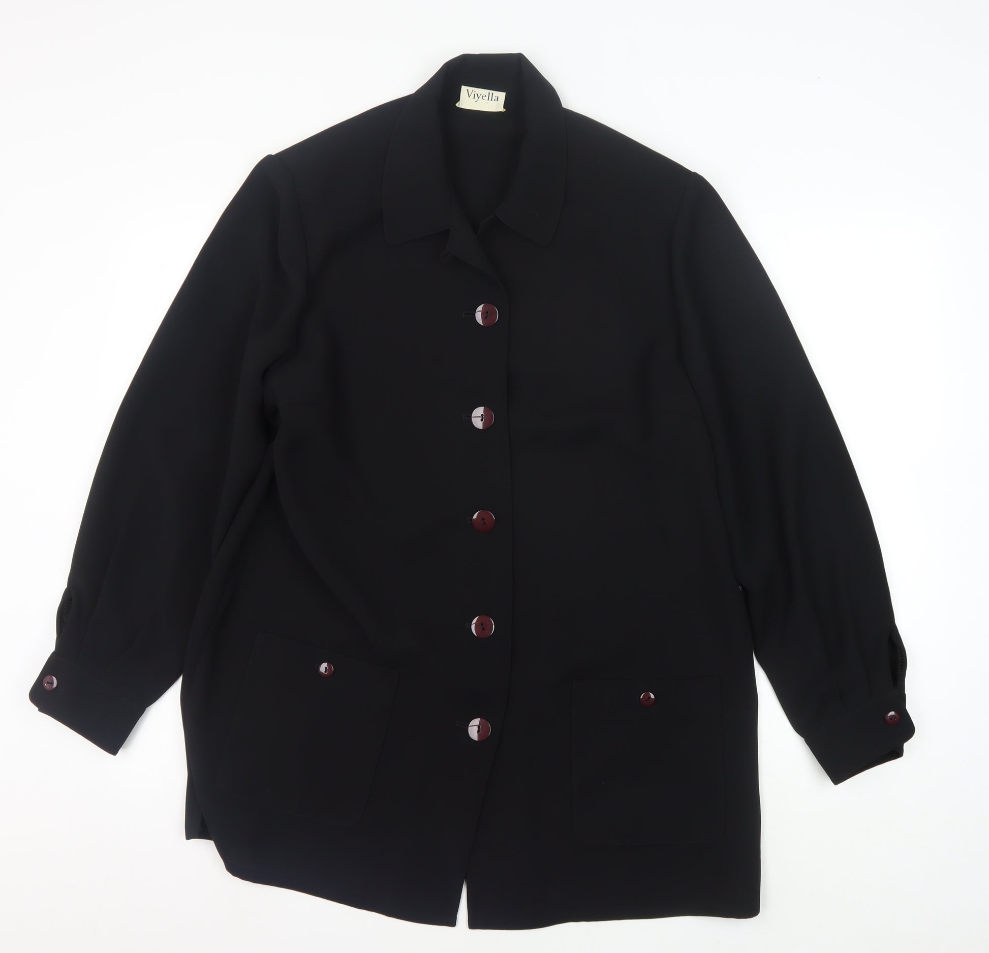 Discover the timeless elegance of this Viyella Women's Black Jacket, perfect for adding a touch of sophistication to any wardrobe. This jacket is crafted with 100% polyester, offering a sleek and lightweight feel that is ideal for all seasons. The classic mid-length design features elegant button accents that enhance its minimalist appeal, perfect for both casual and business occasions.Designed for comfort, this jacket has a regular fit with long sleeves making it suitable for any formal or casual event. The solid black colour provides a versatile look that complements any outfit, while the size 14 fit ensures it caters perfectly to regular-sized individuals seeking effortless style and functionality.Ideal for the modern woman, this jacket's clean lines and impeccable construction ensure it remains a staple in your wardrobe. The button closure adds a touch of classic sophistication, while the hand wash only care ensures its lasting quality and appearance. Elevate your everyday look with this essential piece that seamlessly blends practicality with style.Whether you're dressing up for a work meeting or adding a polished layer over a casual ensemble, this Viyella jacket is your go-to choice. Its understated design follows a 'No Pattern' approach, leaving room for accessories or a patterned blouse to shine. Don't miss out on adding this versatile and classy jacket to your collection today.