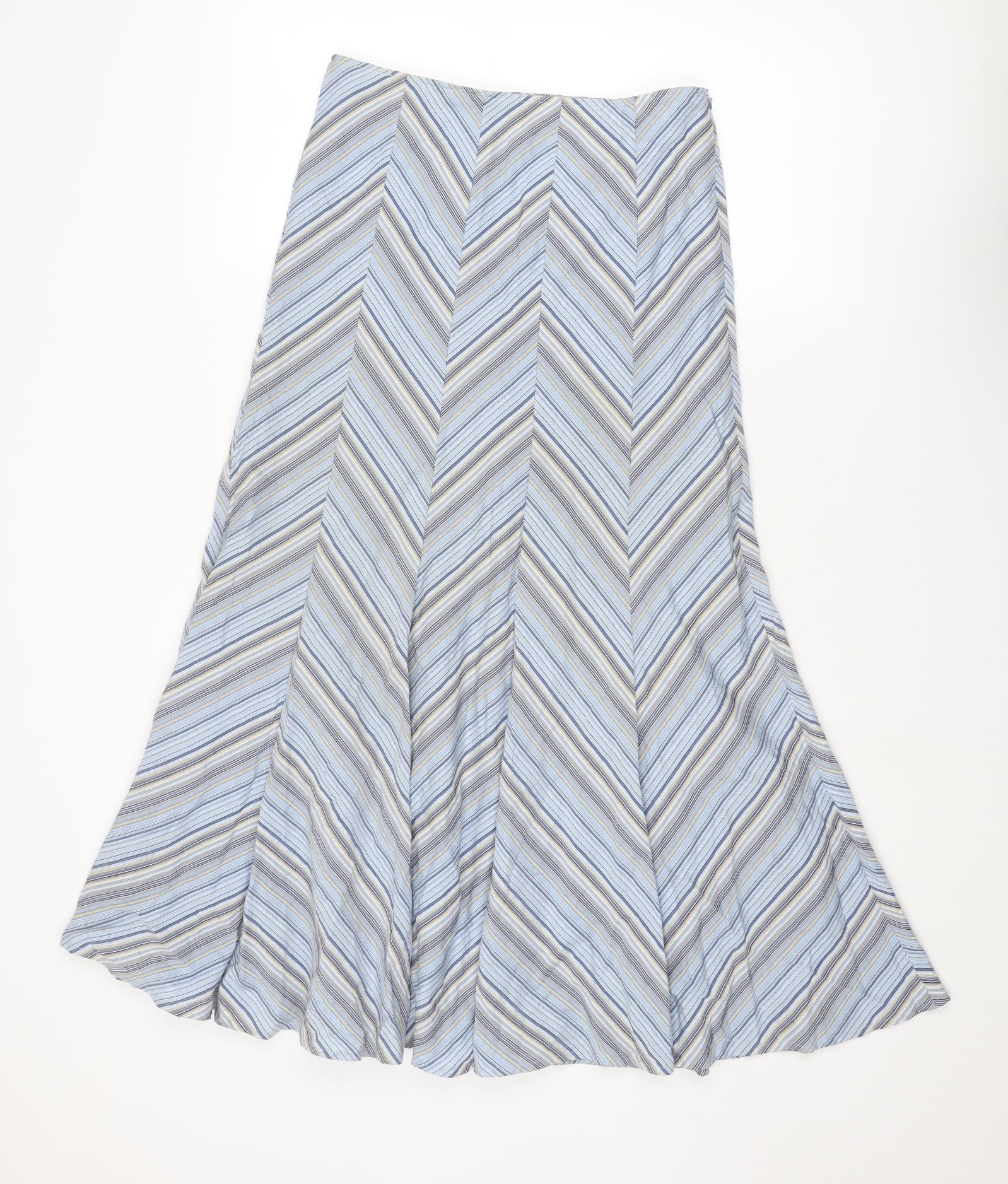 Womens Blue Striped Polyester Swing Skirt Size 14 Zip