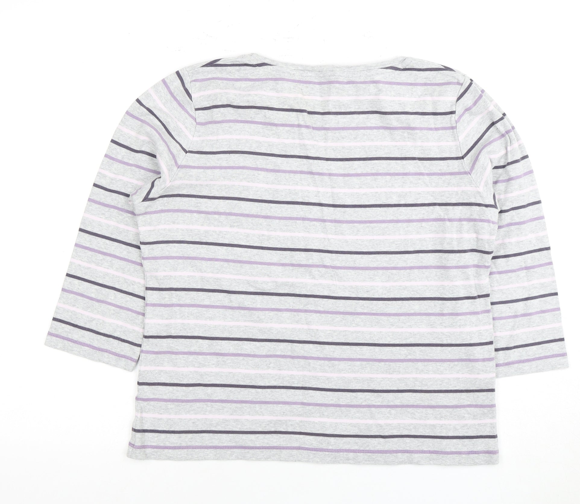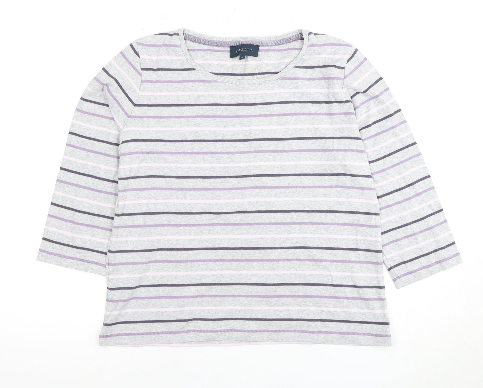 Discover the ultimate in comfort and style with this Viyella Women's Grey Striped Top. Tailored for a casual vibe, this top is perfect for everyday wear and is crafted from 100% cotton for a soft and breathable feel. The subtle grey and pastel stripe pattern adds a touch of elegance, making it a versatile addition to any wardrobe. With a round neckline and classic 3/4 sleeves, this top ensures a flattering fit and ease of movement. Ideal for all seasons, pair it with jeans for a laid-back look or dressed up with accessories for a more refined style. Perfect for casual outings or relaxing at home, this top promises to be your go-to choice for both comfort and fashion. Don't miss the opportunity to add this exceptional piece to your collection.