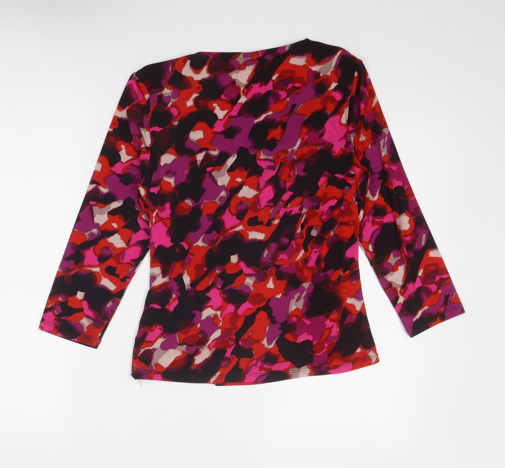 Womens Multicoloured Geometric Polyester Basic Blouse Size M V-Neck - Twist Front Detail