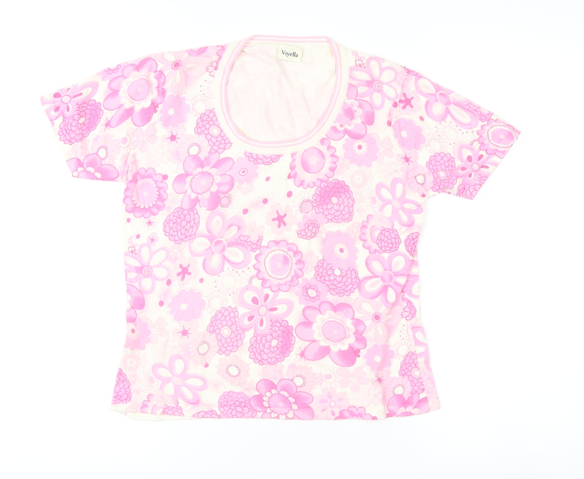 Embrace a touch of florals with this charming pink T-shirt from Viyella, designed for women who love both comfort and style. This short sleeve T-shirt features a delightful floral pattern that immediately brings fresh vibes of spring and summer. The classic round neck offers a relaxed and comfortable fit, making it the perfect choice for casual outings or leisurely days. Crafted from a soft blend of cotton and modal, this jersey top promises breathability, ensuring you feel at ease throughout the day. With its regular fit and machine washable care instructions, maintenance is a breeze. Despite being pre-loved, it remains in excellent condition, with only light wear and no original sales tags attached, adding to its appeal and affordability. Whether you're heading to the park or enjoying a day at home, this top pairs beautifully with jeans or skirts. Enhance your wardrobe with a touch of floral charm and enjoy the simple elegance this piece brings to any outfit. Ideal for those who appreciate style with functionality, this top is more than just a piece of clothing—it's a statement of grace and fashion.
