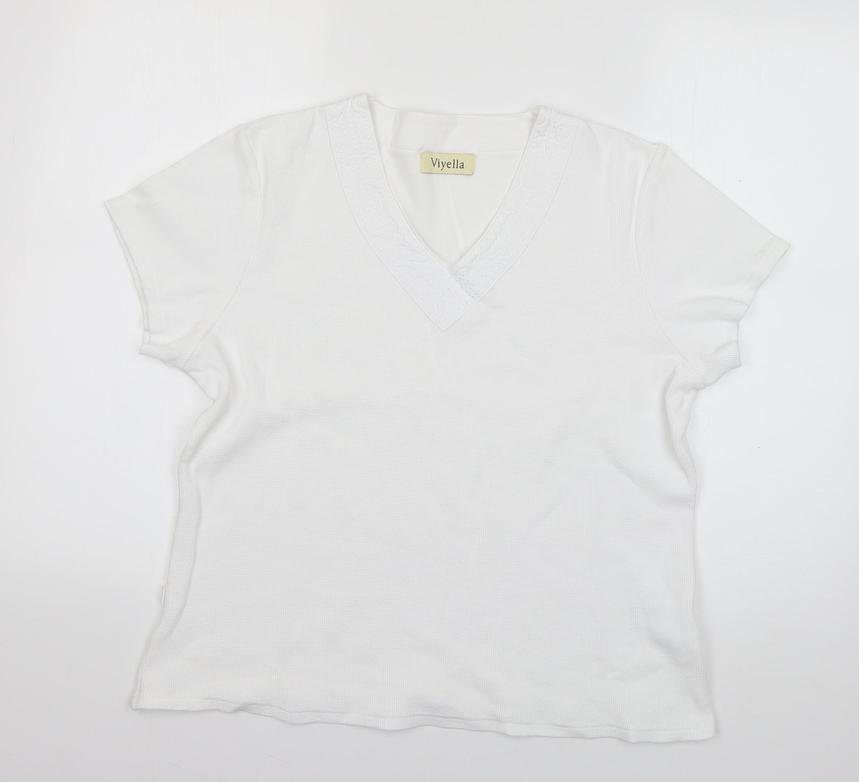 Womens White Cotton Basic T-Shirt Size L V-Neck