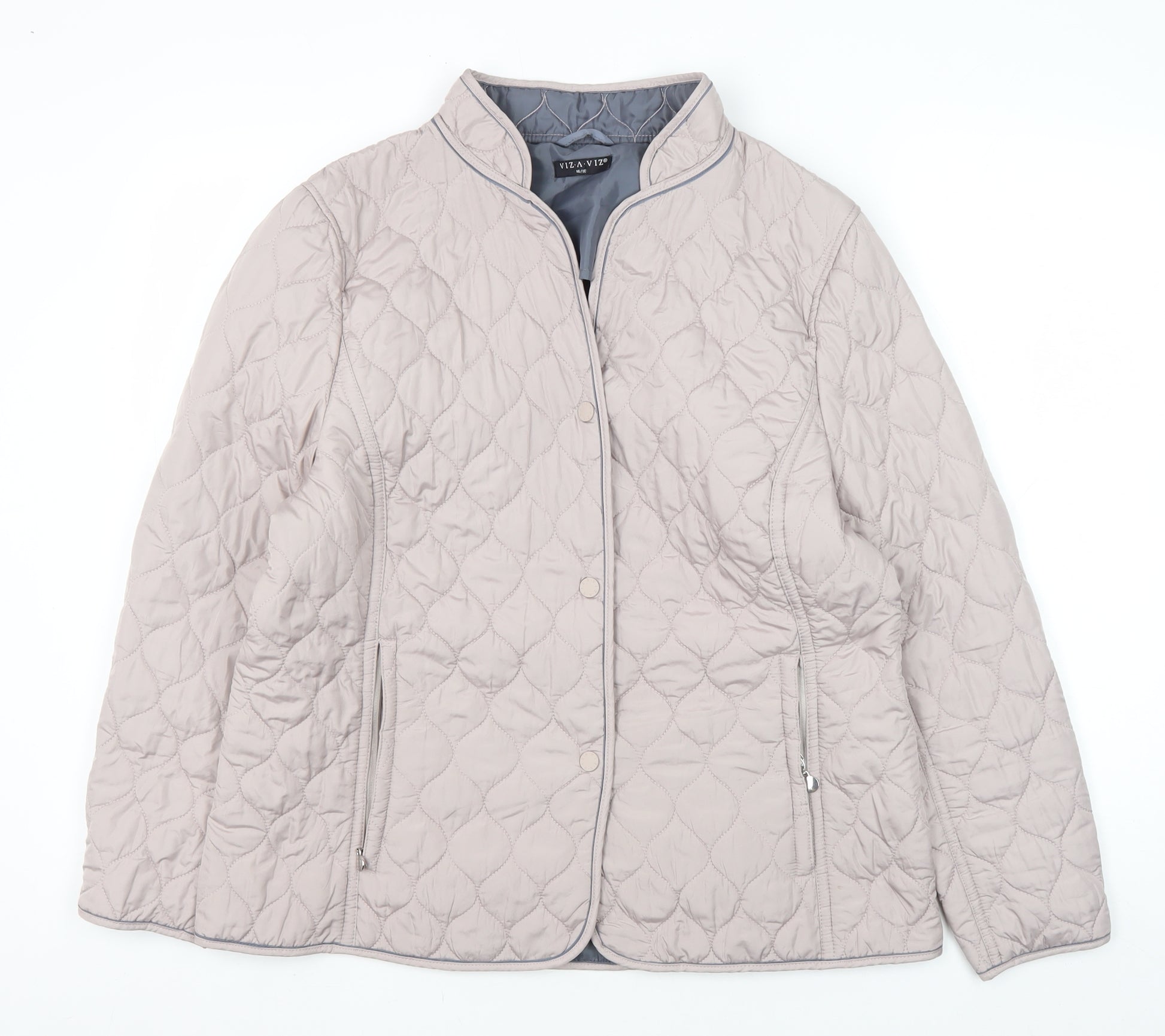Embrace the colder months in style with this elegant VIZ A VIZ quilted jacket. Designed for women, this mid-length beige coat combines fashion and functionality, making it a perfect addition to your autumn, spring, and winter wardrobe. Crafted from 100% polyester, it offers durability and warmth with its fully lined interior and polyester insulation. The jacket features convenient zipped pockets, ideal for keeping your essentials close at hand. The snap and zip closures ensure a secure fit, while the absence of a pattern gives it a timeless appeal suitable for any casual occasion. Easy to care for, this machine washable jacket maintains its quality even after multiple wears. In gently used condition, it shows no visible defects, providing excellent value. Ready to elevate your outerwear collection, this VIZ A VIZ jacket offers versatility and comfort throughout the seasons.