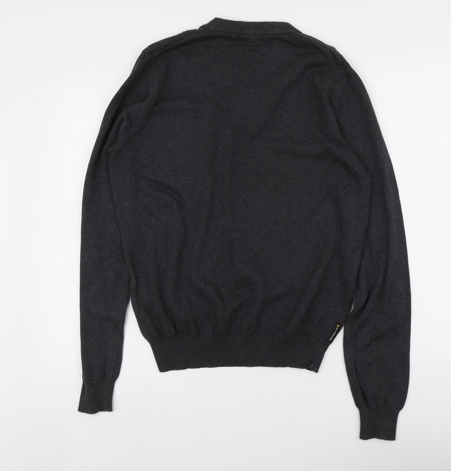 Mens Grey V-Neck Cotton Pullover Jumper Size M