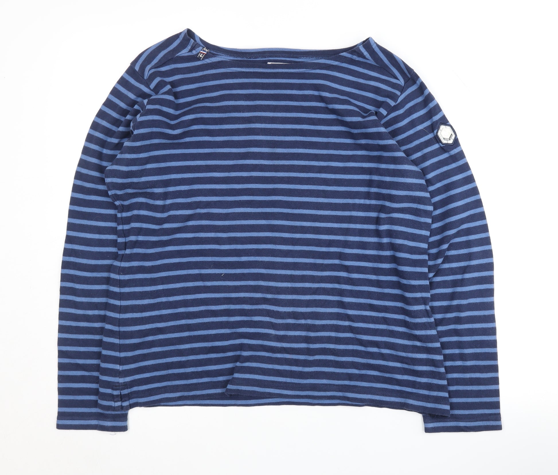 Discover effortless style and comfort with this Voile Bleue Women's Blue Striped Pullover Jumper. Crafted from 100% cotton, this jumper offers a soft and breathable fit, perfect for all-day wear. The classic striped pattern in varying shades of blue adds a nautical charm, making it an ideal choice for casual, everyday wear. The boat neck design provides a touch of elegance, while the long sleeves and relaxed fit ensure comfort and style. This pullover effortlessly pairs with jeans or trousers, making it a versatile addition to your wardrobe. Whether you're heading out for a relaxed day or simply lounging at home, this jumper promises style and ease. Experience the blend of quality and style with Voile Bleue's exquisite craftsmanship, designed for modern women who value both function and fashion. Add this striped beauty to your collection today and embrace a look that is both timeless and chic.