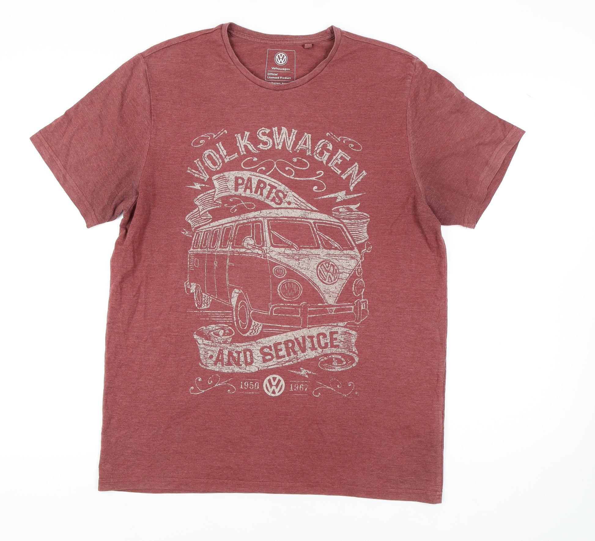 Embrace the iconic style of Volkswagen with this striking men's t-shirt in a vivid red hue. Designed for those who appreciate classic automotive excellence, this t-shirt is an officially licensed product featuring the Volkswagen logo and a vintage vehicle graphic. Made from a comfortable blend of polyester and cotton, it ensures durability while providing a soft feel against the skin. The crew neck and short sleeves offer a casual fit, making it perfect for everyday wear. Ideal for both enthusiasts and casual fans, this t-shirt captures the spirit of the Volkswagen brand. The graphic print adds a retro touch, while the faded effect provides a vintage-inspired look. Easy to care for with its machine washable construction, it's ready to wear for any casual occasion. Crafted for all seasons, this piece is versatile enough to wear on its own or layered under jackets or hoodies when the temperature drops. Whether you're heading out on a road trip or relaxing at home, this t-shirt is a stylish testament to your love for classic cars. Don't miss out on adding this unique piece to your wardrobe, showcasing the style and nostalgia of Volkswagen.