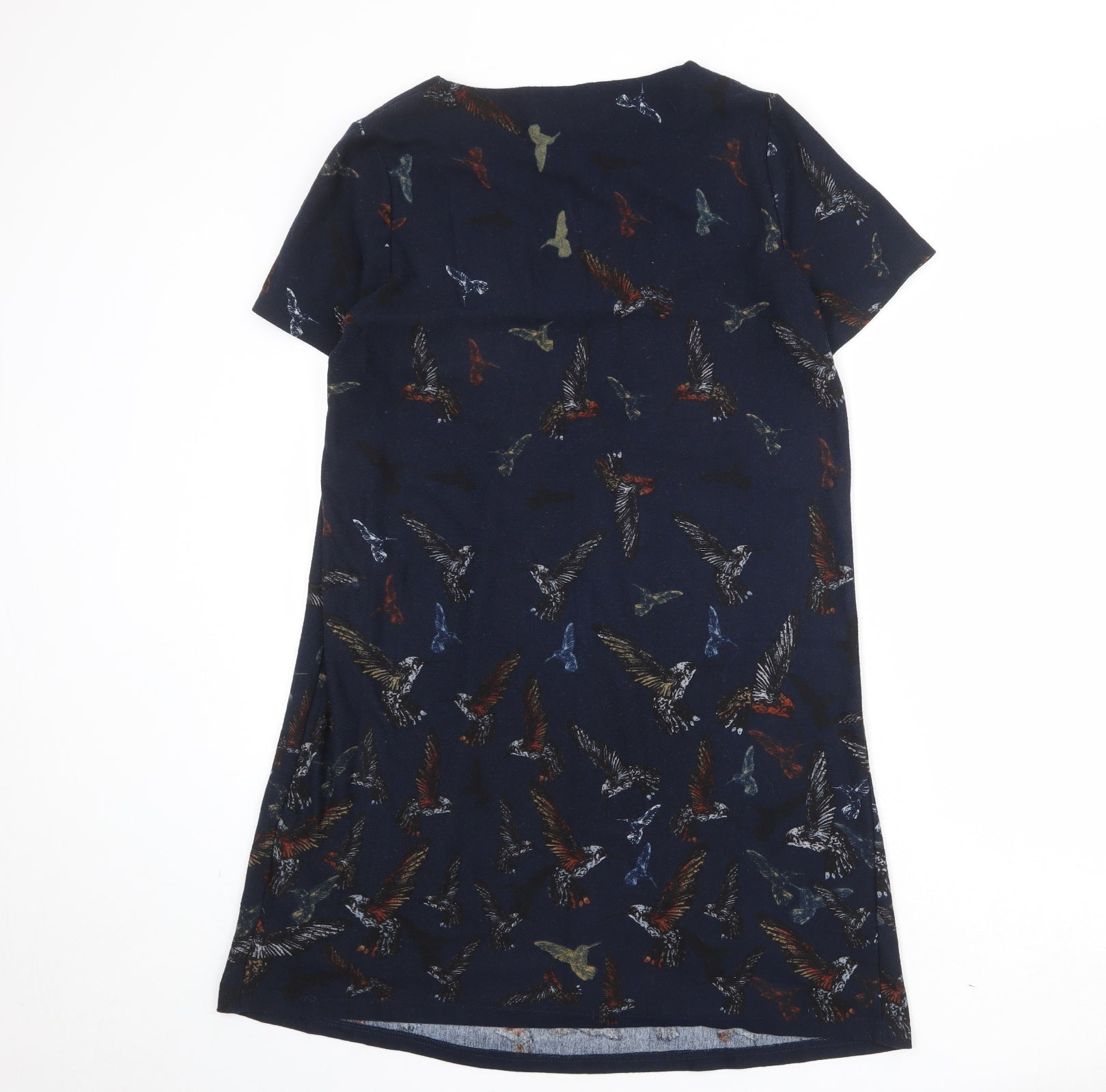 Womens Blue Geometric Polyester A-Line Size L Boat Neck Pullover - Bird Print
