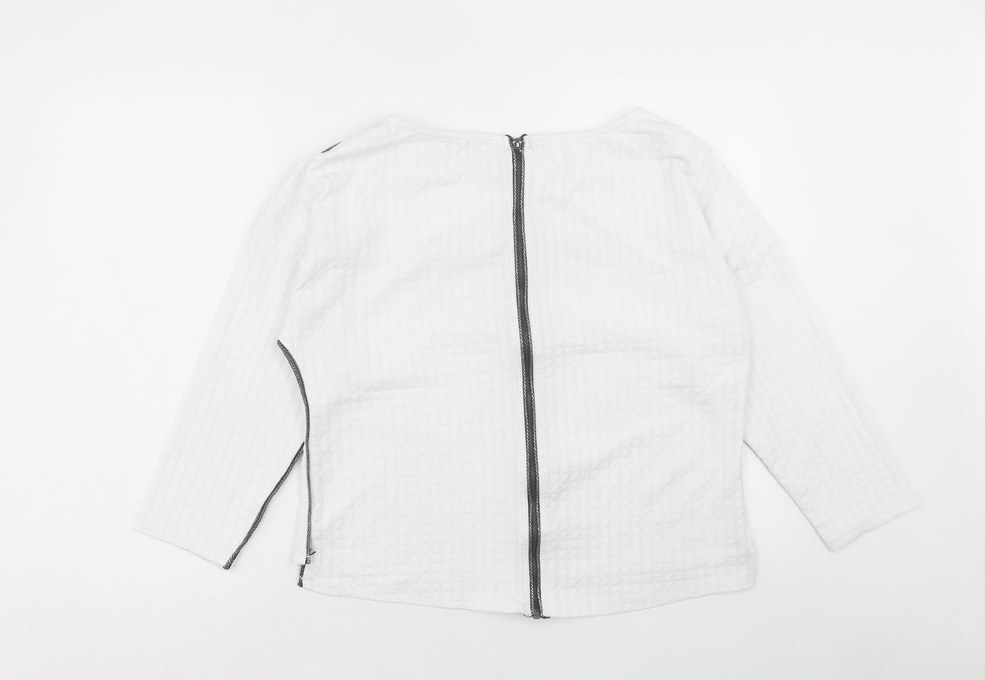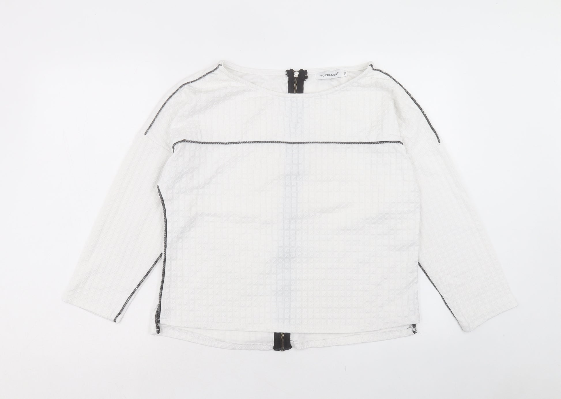 Womens White Polyester Basic T-Shirt Size 8 Boat Neck