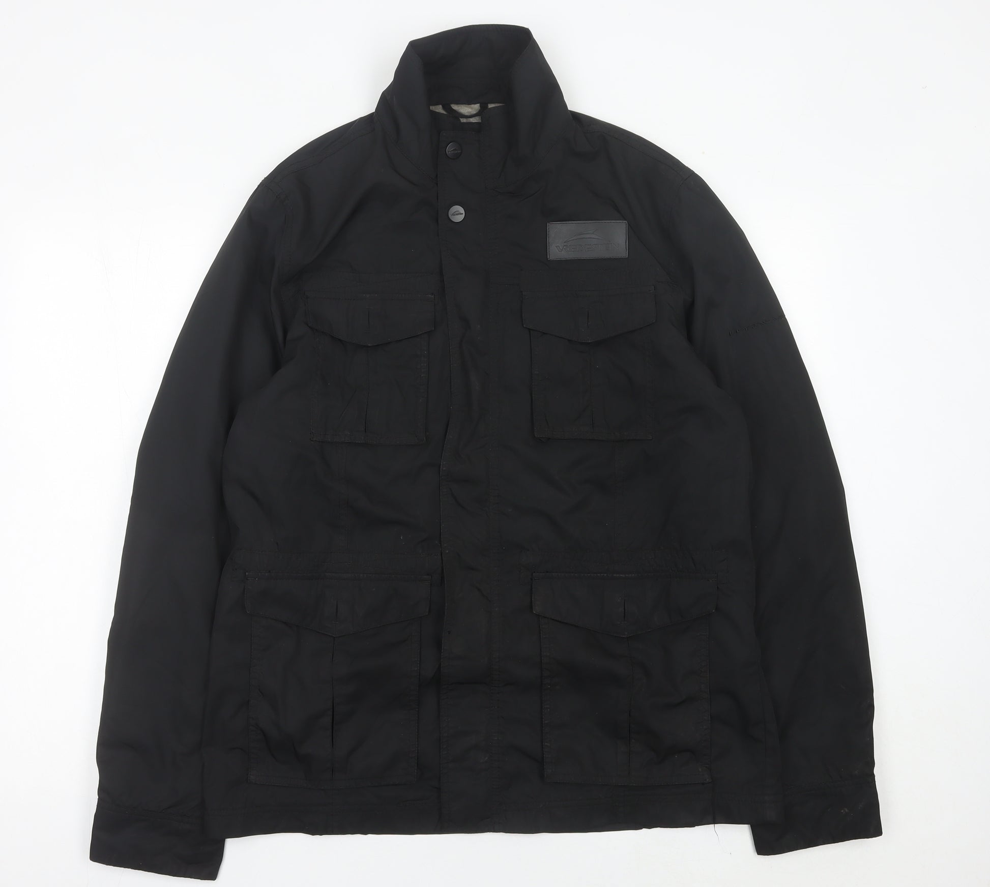 This black Vredestein men’s jacket in size Large is a versatile and stylish addition to any wardrobe, combining practical features with timeless military-inspired design. Made from durable polyester with a cotton lining, it offers comfort and resilience across multiple seasons, making it especially suitable for autumn, spring, and cooler winter days. The jacket is finished in a sleek black tone, ensuring it can be easily paired with a wide variety of outfits, whether dressing casually for travel or layering for outdoor activities.Designed in a military jacket style, it features multiple utility pockets at the chest and hips, perfect for carrying everyday essentials securely. The full front zip fastening is reinforced with button closures, offering practicality alongside a sharp structured look. The stand-up collar adds both a modern edge and additional protection from the wind. The mid-length design provides coverage without restricting movement, making it excellent for walking, commuting, or casual outings.Constructed with durable polyester as the outer shell, the jacket benefits from a twill fabric texture offering strength while remaining soft to wear. The cotton lining ensures breathability and added comfort when worn over layers. Functional details such as collared structure, combination closure system of zip and buttons, and practical storage space enhance its everyday value. Its timeless black colourway provides flexibility for styling, making it an essential staple in any gentleman’s wardrobe.In terms of condition, this jacket is in very good pre-owned condition. It shows light signs of wear consistent with gentle use but no major flaws or damage, ensuring plenty of life for the next owner. This makes it an excellent choice for those seeking quality outerwear at a more accessible price point compared to new retail.This piece is perfect for casual and travel scenarios, with versatile styling whether paired with jeans, chinos, or smarter layering when required. It is an excellent wardrobe investment for men seeking a practical yet stylish outerwear solution.Overall, this Vredestein black military jacket combines form, function, and timeless style, providing an affordable, reliable, and fashionable choice for everyday wear.