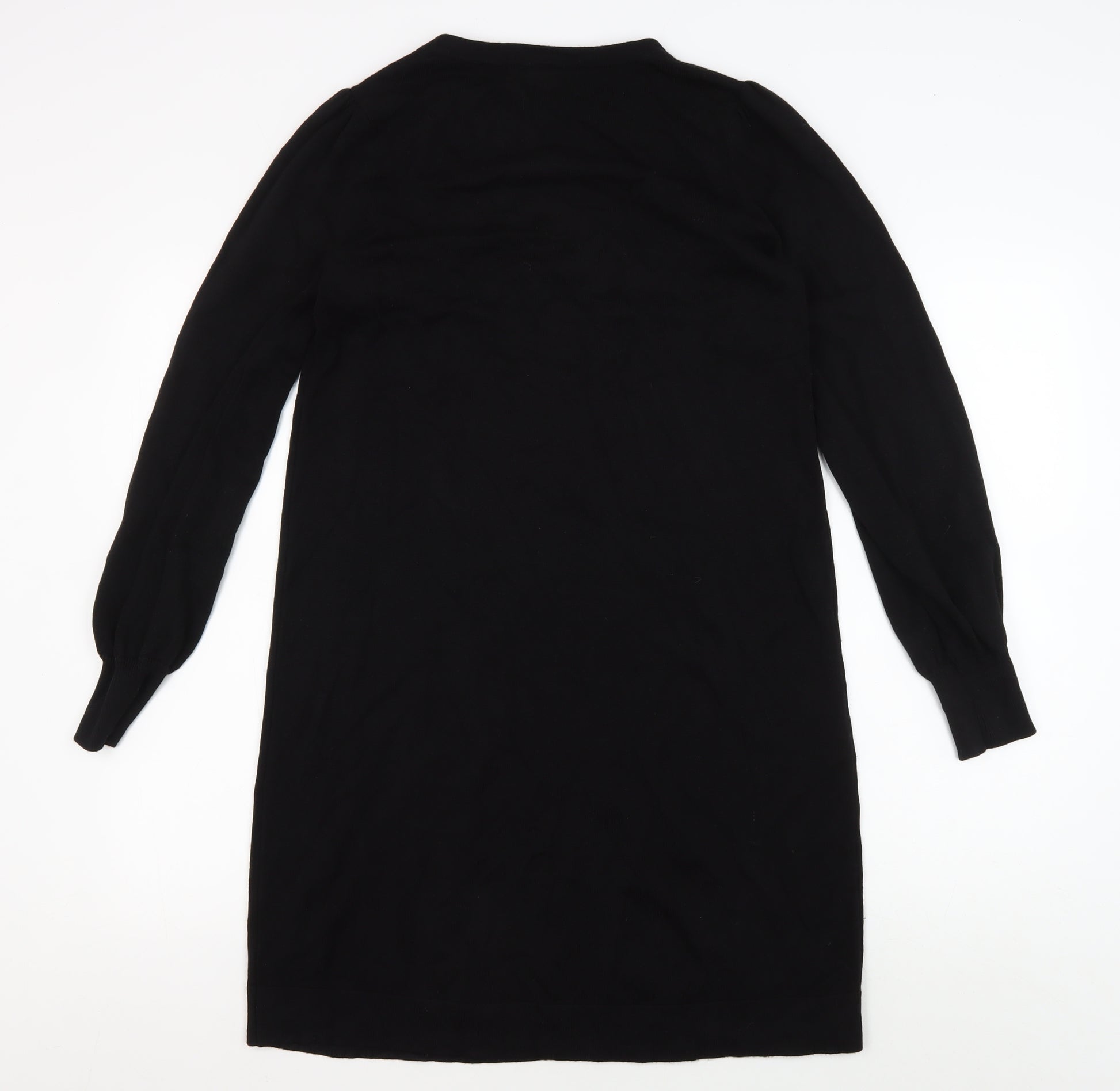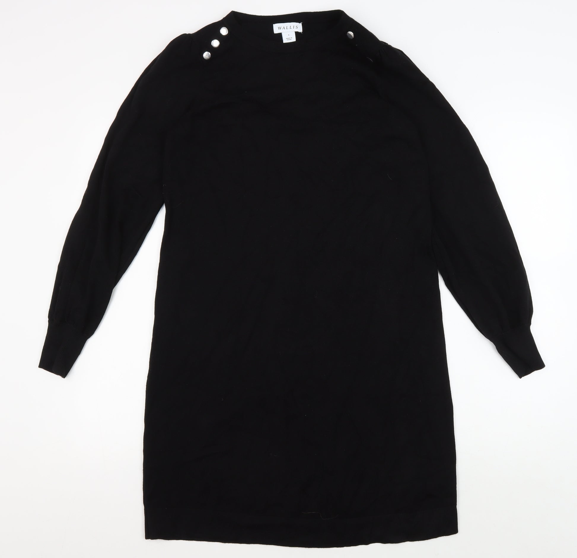 Elevate your wardrobe with this elegant black dress from Wallis, designed for the discerning woman. In a classic Size S, this dress is fashioned in a sleek black colour, perfect for any occasion from casual to a more refined evening out. Crafted from a comfortable blend of viscose and nylon, this dress ensures a flattering fit while maintaining its shape through multiple wears. Its long sleeves add a touch of sophistication, keeping you stylishly warm during cooler days. The dress features chic button accents, adding a subtle yet notable detail that elevates its simplicity to fashionable heights. With machine washable care, maintaining the dress’s pristine condition is hassle-free. Though it lacks original tags, rest assured the garment is in excellent condition with no visible flaws, ready to become a staple in your collection. Don't miss out on the versatility and timeless appeal of this Wallis dress, a must-have for dressing up any occasion with ease.