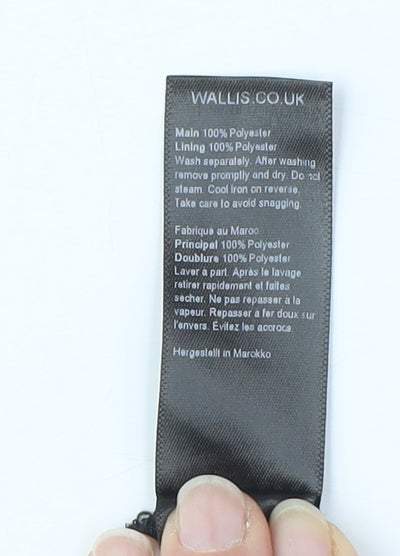 Step out in style with this chic Wallis Petite Black Polka Dot Tunic Blouse. Perfectly tailored for women, this blouse features a charming polka dot pattern set against a classic black background, offering a timeless look for any casual occasion. Designed with 3/4 bell sleeves and a flattering V-neckline, this blouse effortlessly combines comfort with elegance. Crafted from 100% polyester, it provides a lightweight, woven fabric that is easy to care for and ideal for all seasons. Its pullover style and regular fit make it a versatile addition to your wardrobe, while the petite sizing ensures a perfect fit for petite frames. Whether you're dressing up for a day out or enjoying a casual evening, this Wallis blouse is your go-to option. Lightly worn with no visible damage, it's in excellent condition and ready for a new owner. A must-have for those seeking a balance of style and comfort, this blouse is sure to become a staple in your fashion collection.