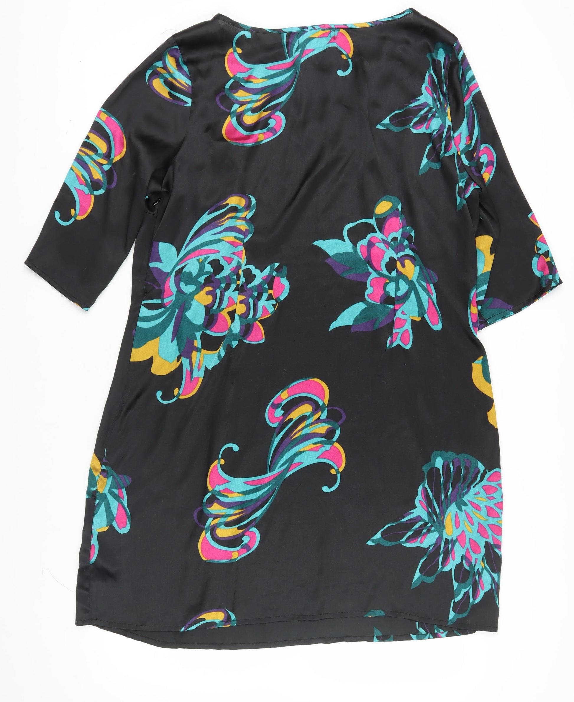 Elevate your wardrobe with this vibrant multicoloured floral shift dress from Wallis. Designed for women, this dress perfectly combines style and comfort, making it an ideal choice for casual occasions. The knee-length silhouette and 3/4 sleeves exude an effortless chic vibe, while the colourful floral pattern adds a pop of colour to your autumn and winter wardrobe. Crafted from high-quality woven polyester, it promises durability and a lightweight feel, ensuring you stay comfortable all day. The boat neckline offers a flattering fit, complemented by the sequin accents that bring a touch of sparkle. This dress is in excellent condition, with gently worn notes that maintain its vibrant appeal. Whether dressing up for a casual outing or embracing a stylish yet relaxed look, this Wallis shift dress is your go-to choice. Pair it with your favourite accessories to create a statement ensemble.