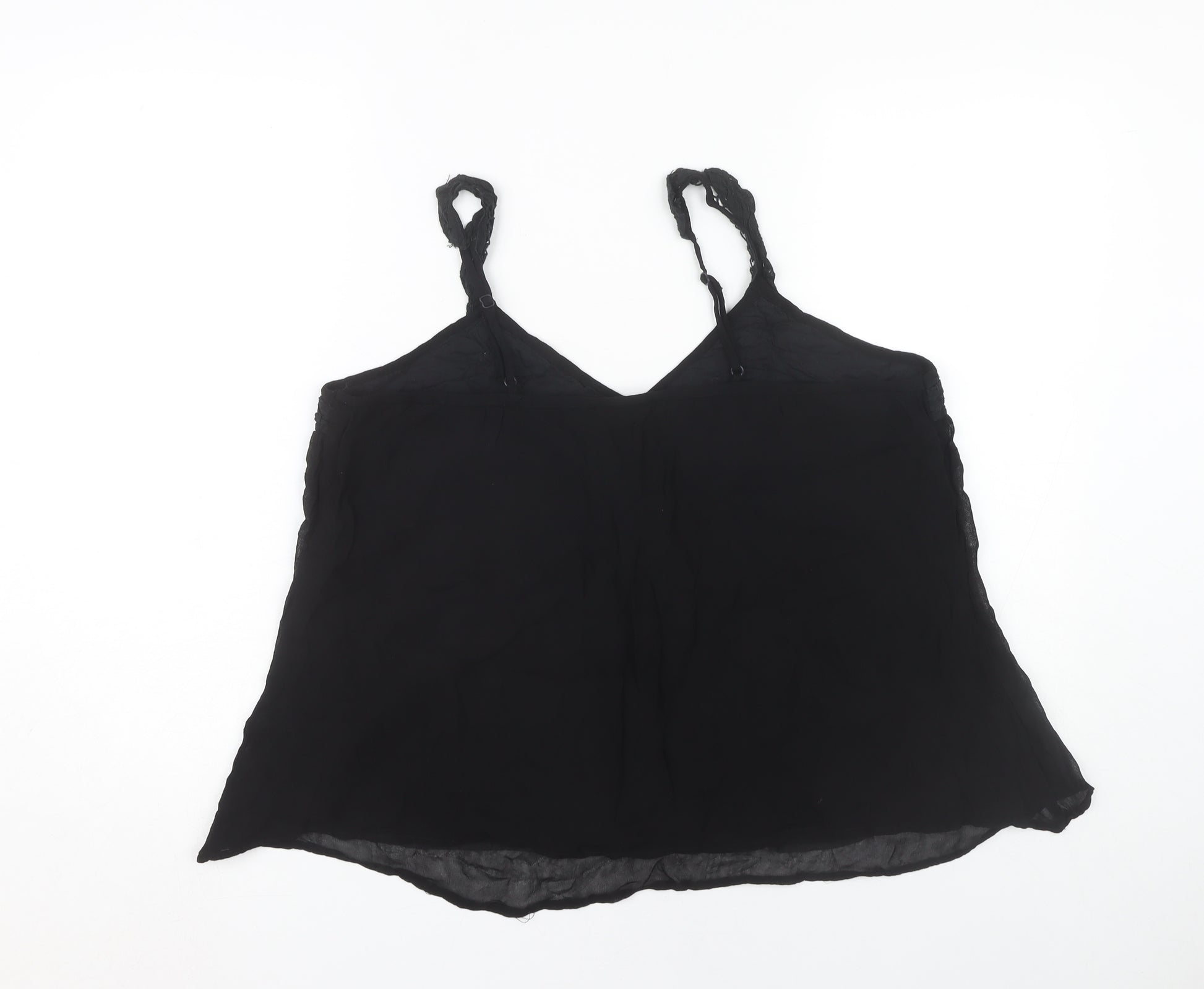 Introducing a sleek and elegant black camisole top by Wallis, perfect for any woman's summer wardrobe. This V-neck tank features delicate lace accents and spaghetti straps, offering a seamless blend of comfortable style and sophistication. Crafted from 100% viscose with cotton trim, the top provides a soft and breathable experience. Ideal for casual occasions, its lightweight build ensures comfort in warmer weather. The pullover style enhances ease of wear, making it a versatile addition to your collection. Add a touch of elegance to your casual outings with this Wallis piece.