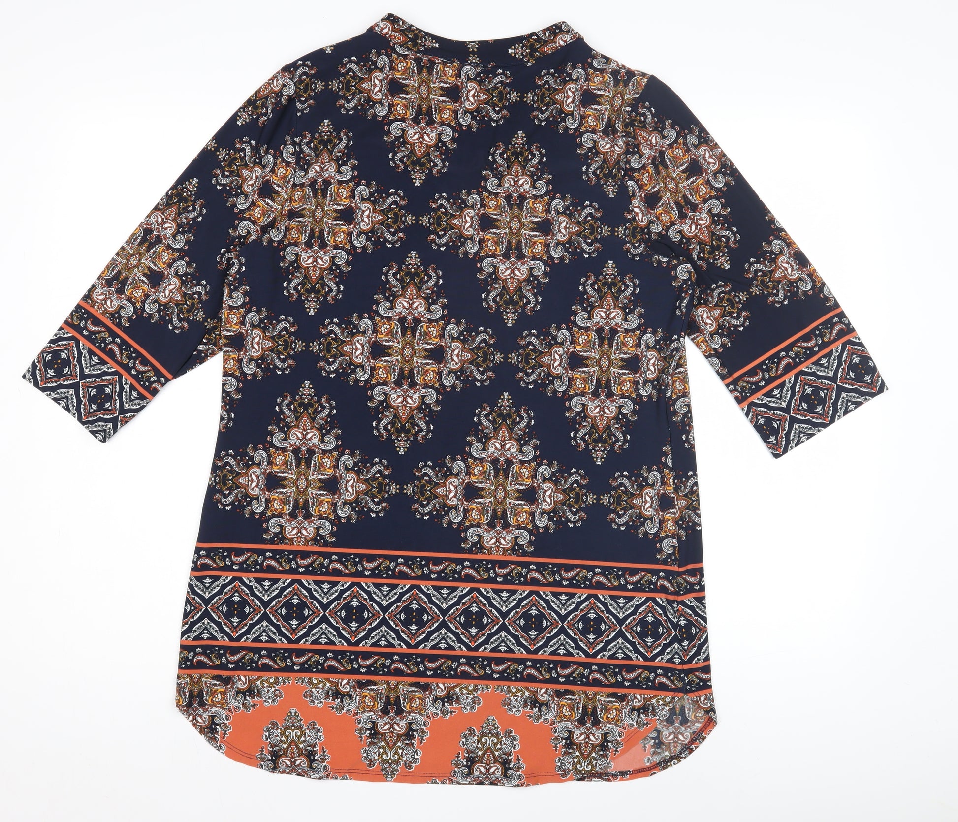 Elevate your casual wardrobe with this charming Wallis women's blouse. Featuring a stunning paisley pattern, this multicoloured top is designed to add a splash of vibrance to any outfit. The V-neckline and 3/4 sleeves offer a flattering fit, perfect for all body types. Crafted from a comfortable blend of polyester and elastane, this jersey fabric blouse ensures all-day wearability, making it suitable for both relaxed and semi-casual occasions. Easy to care for with machine washable fabric, this blouse is ideal for women seeking both style and convenience. This piece is in excellent condition, with no marks or signs of wear, ready to enhance your fashion collection. Pair it with jeans for a casual day out or dress it up with trousers for a chic, laid-back evening look. With its regular fit and elegant cut, this Wallis blouse is a versatile addition to any wardrobe. Ideal for women who appreciate both style and comfort, grab this piece before it's gone.