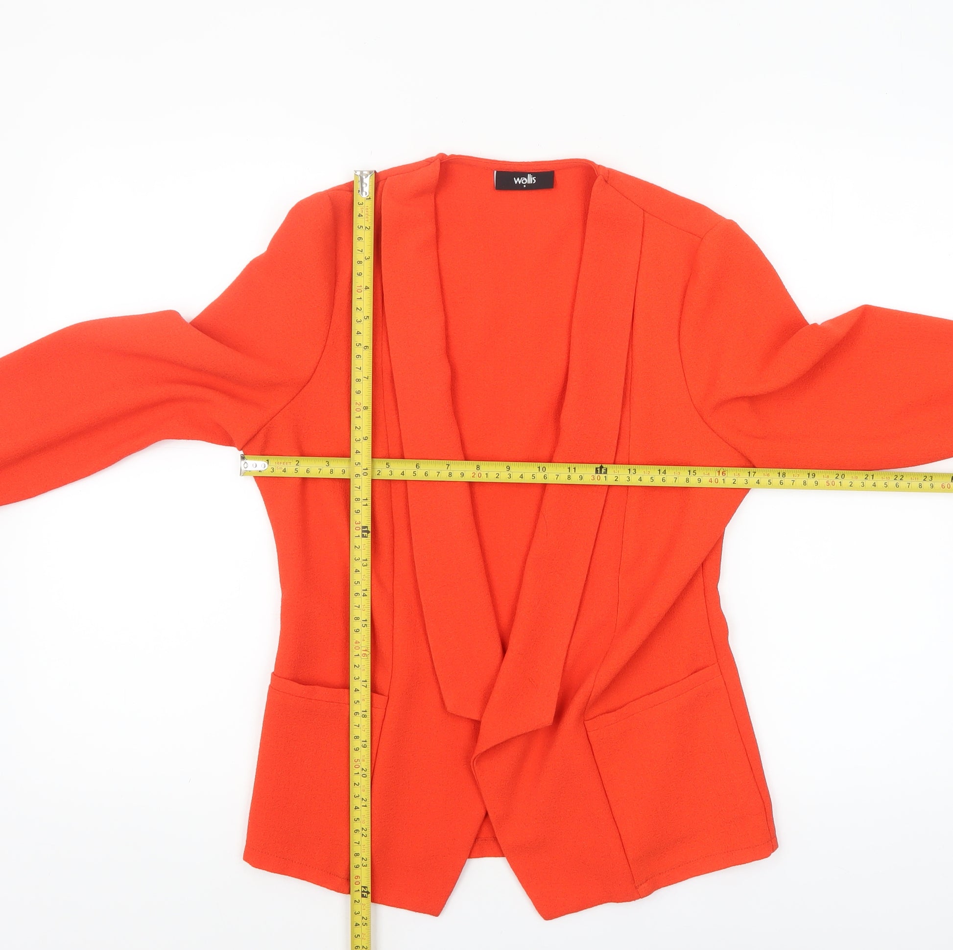 Add a vibrant splash of colour to your wardrobe with this beautifully structured women’s orange crepe blazer from Wallis. Crafted from a soft and flexible mix of polyester and elastane, the jacket offers a polished look with exceptional comfort. The lightweight fabric makes it ideal for layering across seasons, especially in spring and autumn. Designed in a flattering open style without fastenings, it drapes elegantly over any outfit, providing an effortless smart-casual touch. The blazer includes two handy front pockets for practical style and rolled sleeves for a relaxed, modern edge. Its short length and regular fit ensure a versatile silhouette that complements trousers, skirts, or dresses. Perfect for wearing to work, business meetings, or smart-casual occasions, this Wallis blazer transitions seamlessly from day to night. The bright orange tone makes a bold style statement, ideal for those who love confident colour without compromising on refinement. The interior is neatly finished for lightweight comfort, while the soft, crepe-like fabric gives a smooth feel and sharp finish. Though lightly used, the garment remains in excellent condition with no visible flaws or damage. Whether layered over a blouse for the office or paired with jeans for an off-duty look, this timeless Wallis piece adds vibrance and sophistication to any wardrobe. A must-have essential for women who value chic tailoring, comfort, and colour confidence.