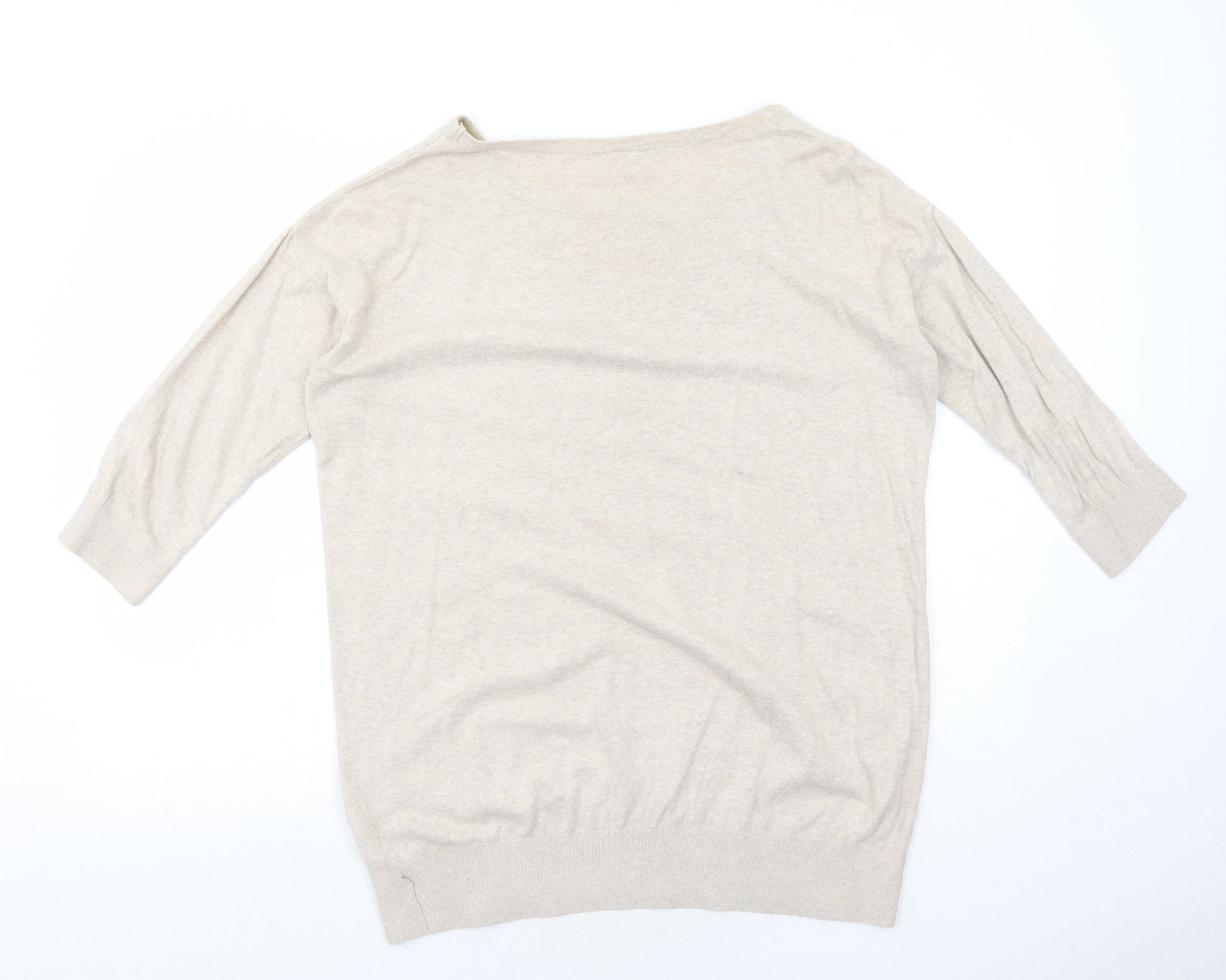Womens Beige Round Neck Cotton Pullover Jumper Size M - Butterfly