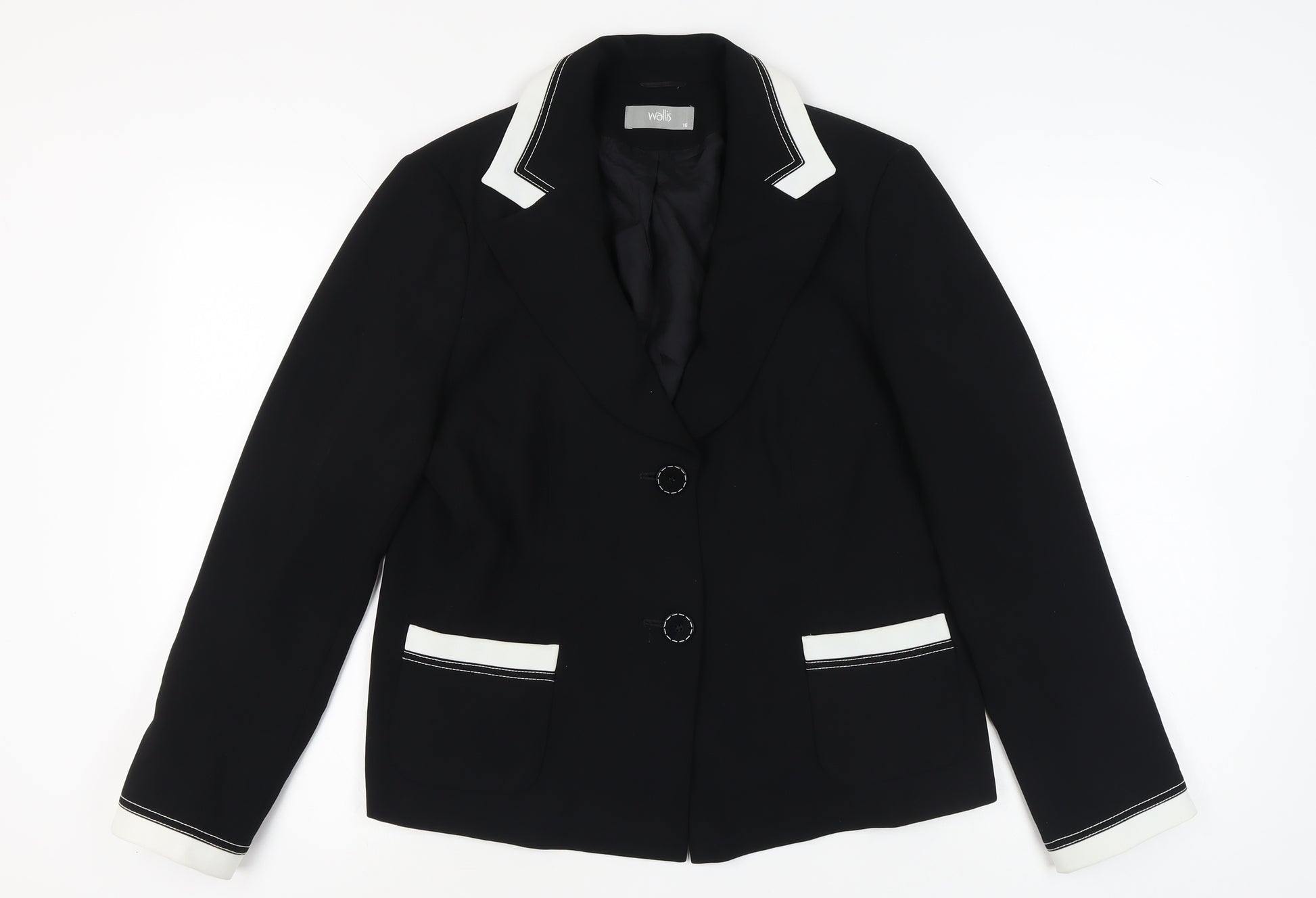 Elevate your wardrobe with this stylish Wallis Women's Blazer in a versatile black. Perfect for any occasion, this classic piece features a two-button single-breasted design, complemented by a chic notch lapel. Crafted from 100% polyester, it's both durable and comfortable, providing effortless elegance. The blazer is fully lined with acetate, ensuring a sleek fit and easy layering over your favourite tops. Designed for women, this regular fit blazer in size 16 promises a polished look without compromising on comfort. Ideal for office wear or a sophisticated evening out, it's a timeless addition to any fashion-forward collection. The long sleeves and regular jacket length offer a flattering silhouette, while the subtle detailing adds a touch of sophistication. Whether paired with trousers for a tailored finish or dressed down with jeans for a casual edge, this blazer is a must-have. Experience the blend of functionality and style with this beautifully constructed piece from Wallis, offering quality you can trust. Don't miss out on this excellent condition blazer, ready to enhance your wardrobe with its classic charm and versatility.