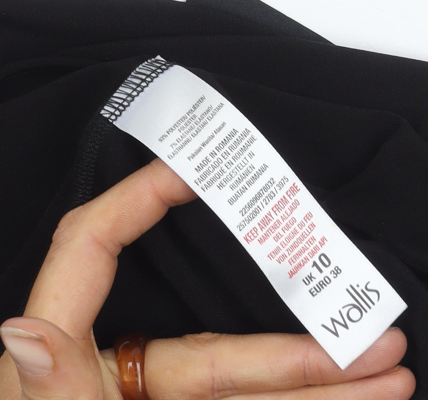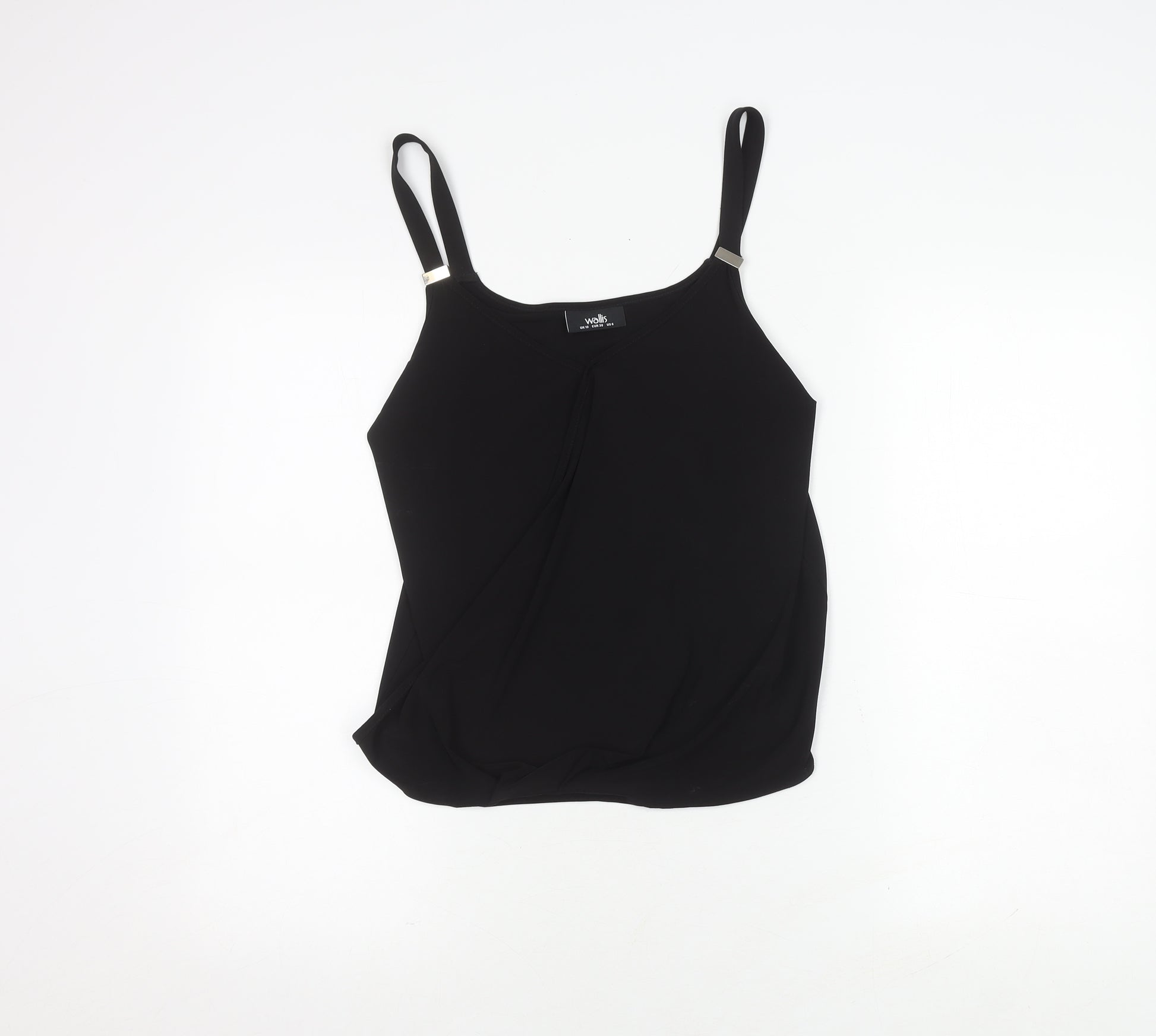 Upgrade your wardrobe with this elegant Wallis camisole, perfect for any casual outing. Crafted from high-quality polyester with a touch of elastane for a comfortable stretch, this black tank boasts a sleek V-neckline and stylish spaghetti straps. Designed for women, the camisole's regular fit offers a flattering silhouette suitable for various occasions. Its lightweight fabric allows easy movement, making it ideal for summer days or layering under a jacket in cooler months. This solid pattern top seamlessly integrates into your collection, offering a timeless piece you can return to season after season. Machine washable for easy care, this top maintains its excellent condition with no visible wear. A classic design from Wallis ensures that this camisole is both chic and versatile, allowing you to pair it with jeans, skirts, or shorts for countless outfit combinations. Priced competitively, it remains a stylish addition at a fraction of the retail cost, promising durability and fashion for years to come. Don't miss the opportunity to add this black camisole to your favourites.