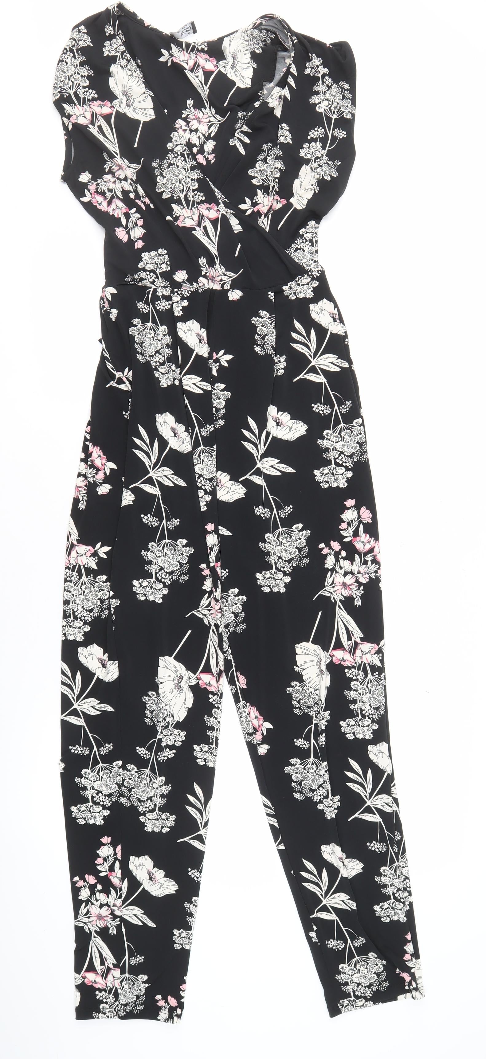 F&F Women Black Floral Sleeveless Jumpsuit Size 10 Viscose Casual Style