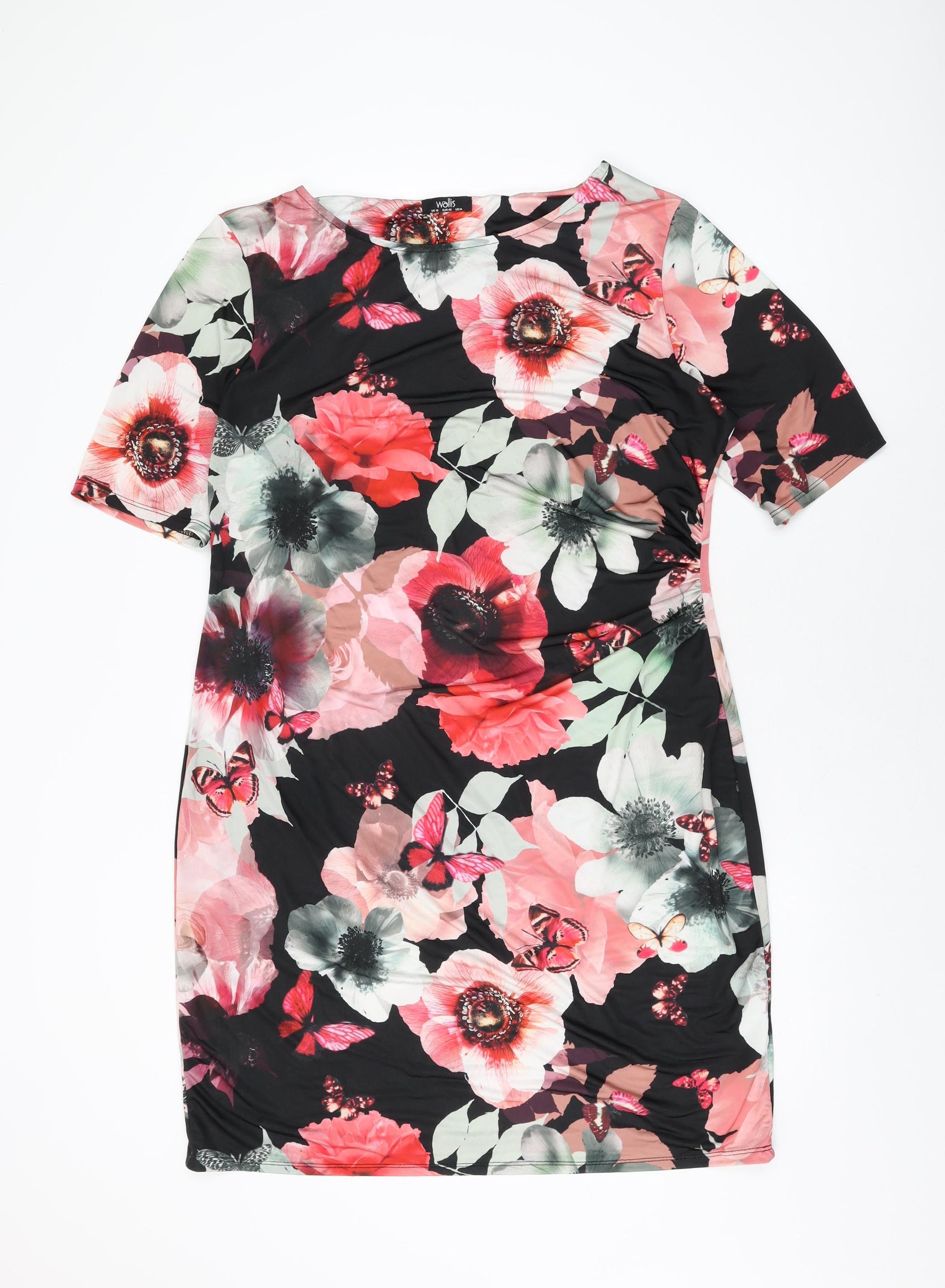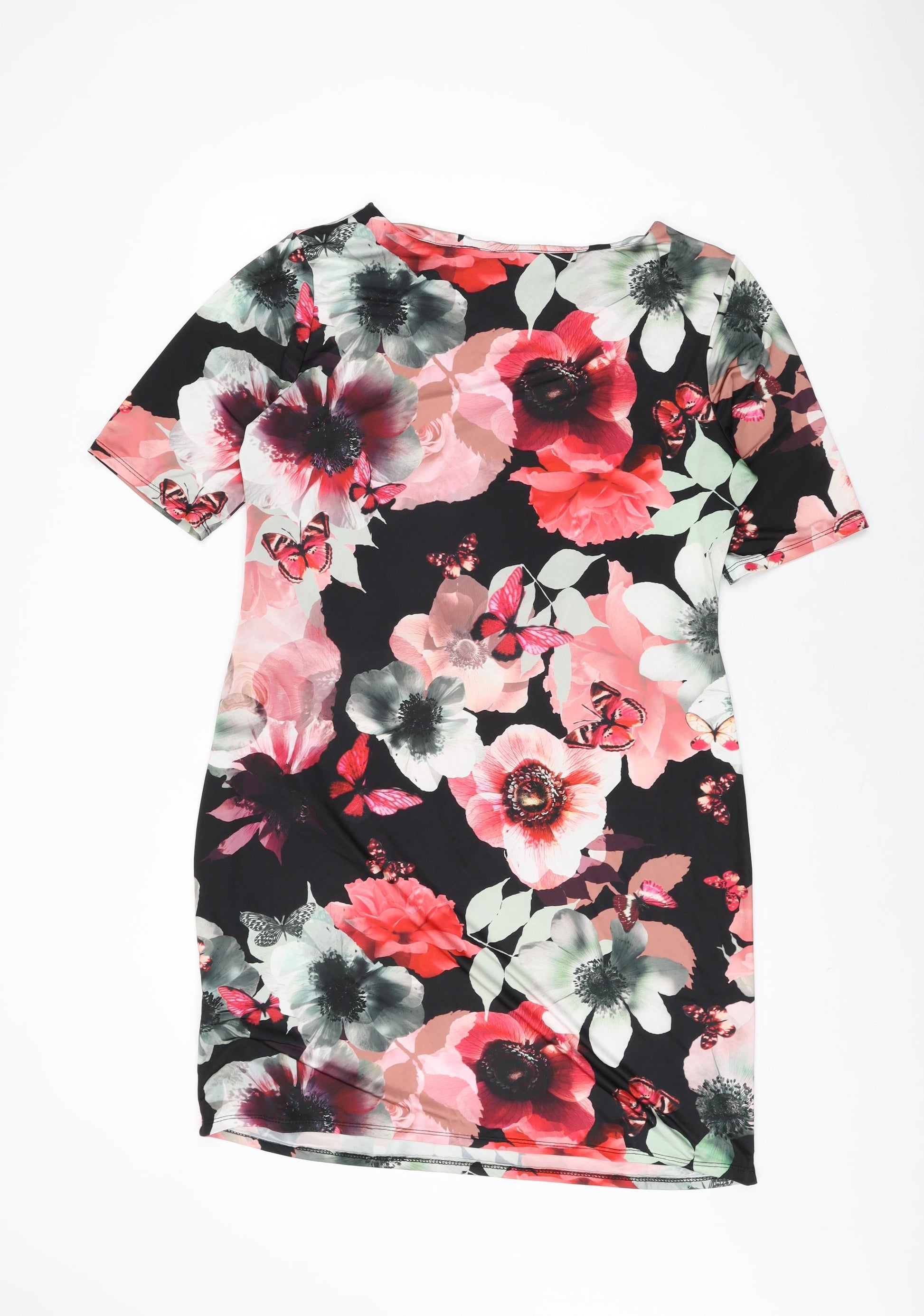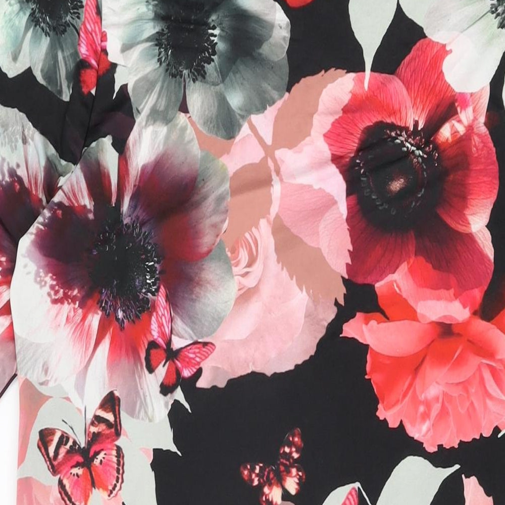 Womens Black Floral Polyester Bodycon Size 18 Round Neck Pullover