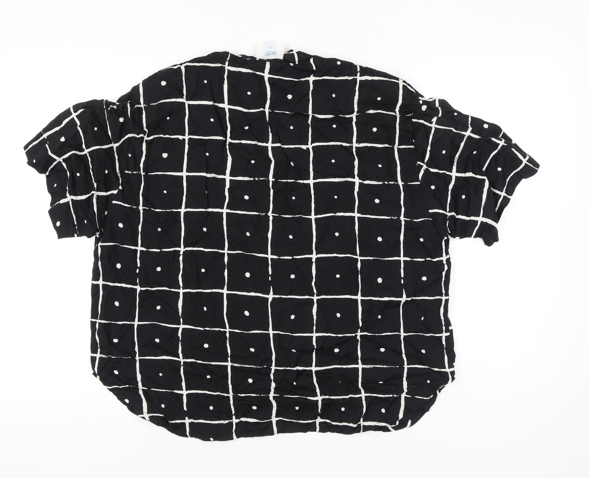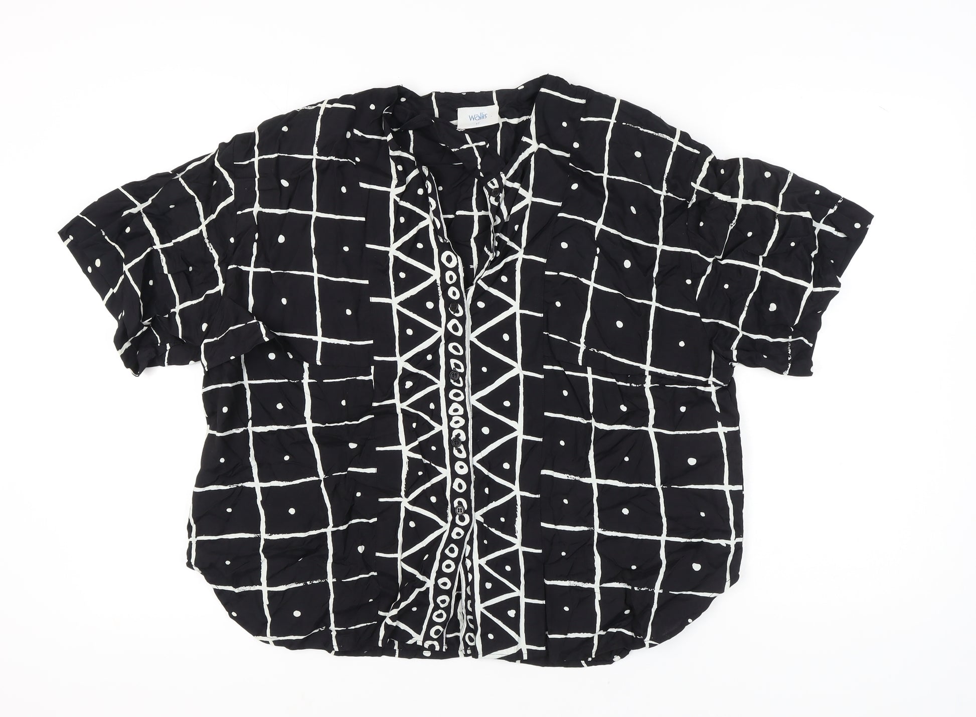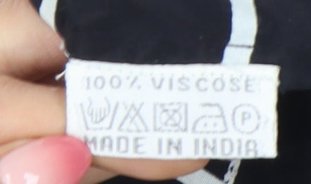 Elevate your wardrobe with this striking Wallis women's blouse, showcasing a classic black colour accentuated by a chic geometric pattern. Crafted from 100% viscose, this blouse offers a soft and breathable feel, perfect for all-day wear. Its versatile size 12 accommodates a comfortable fit, making it a great piece for various occasions. The blouse's geometric design brings a modern edge, effortlessly blending with your favourite outfits. Although pre-owned, it remains in excellent condition with no visible defects, reflecting careful handling and quality. Whether paired with jeans for a casual look or worn with a skirt for a more formal setting, this Wallis blouse is a staple for any fashion-forward individual. Grab yours at a fantastic price today and enjoy the effortless style and comfort it offers.