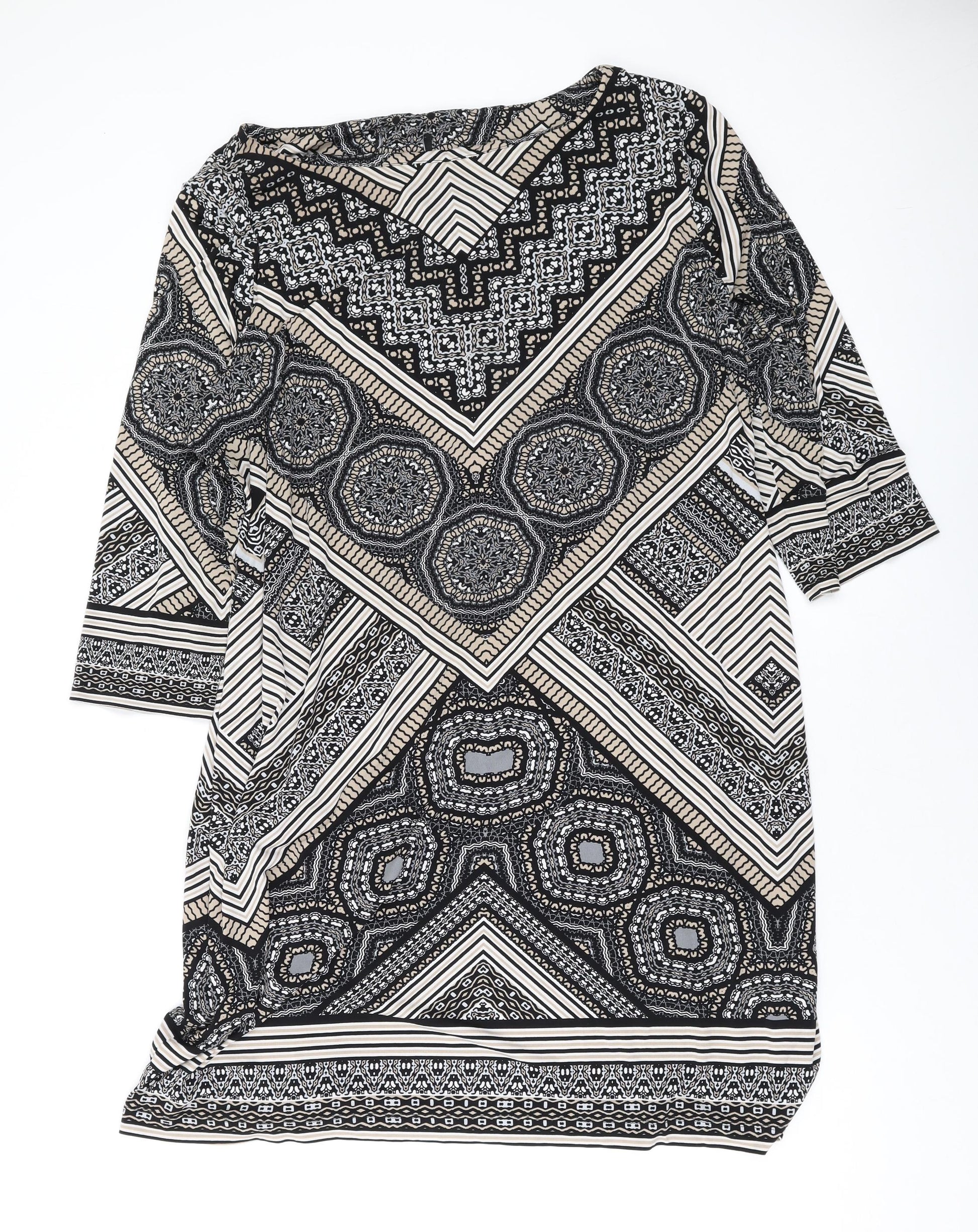 Womens Black Geometric Polyester A-Line Size 16 Boat Neck Pullover