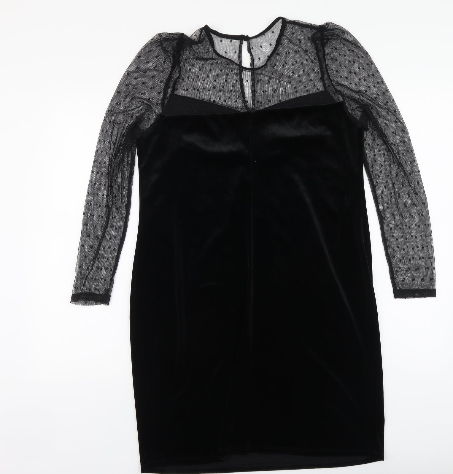 Womens Black Polka Dot Polyester Bodycon Size 14 Round Neck - Mesh Top