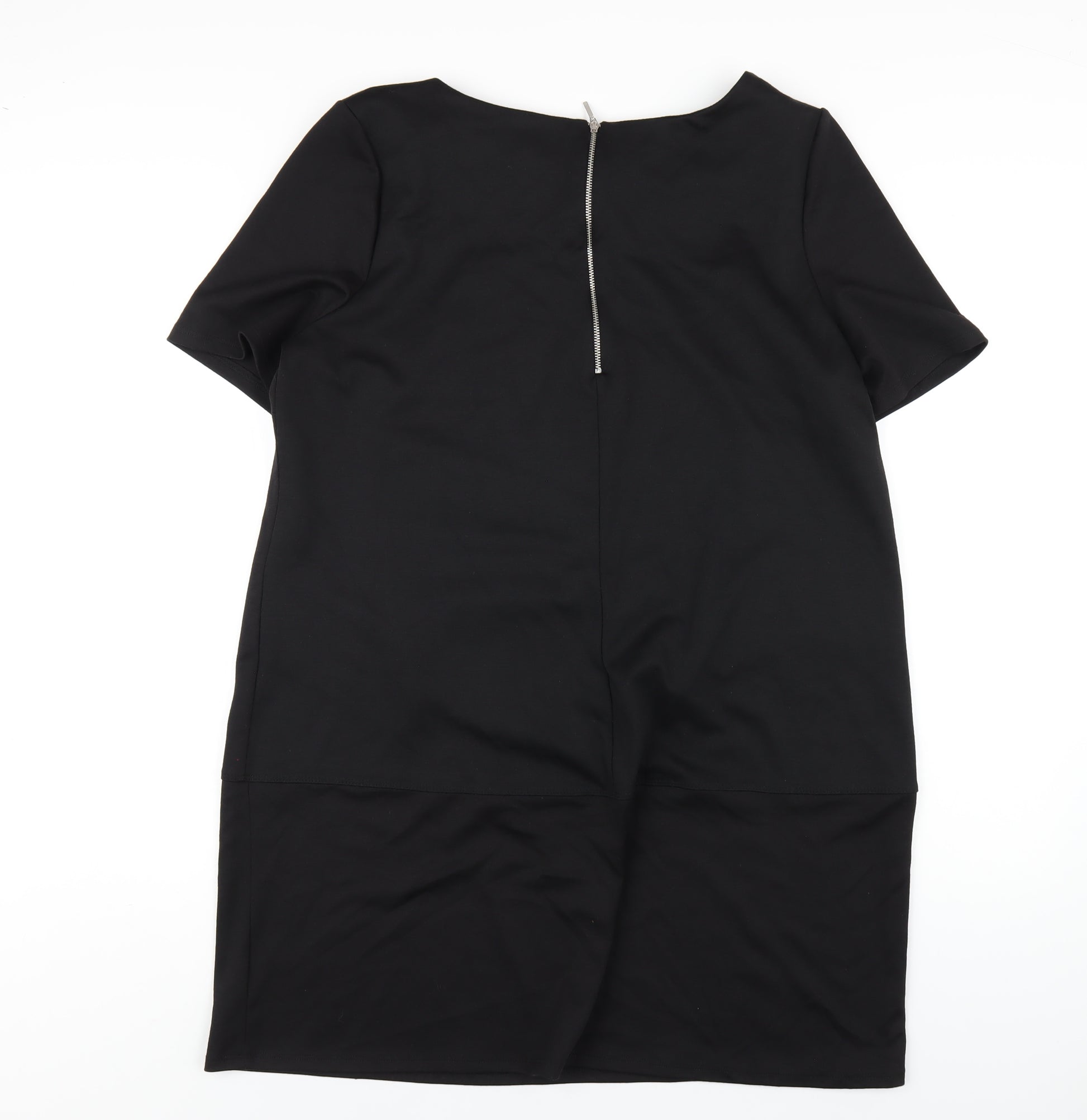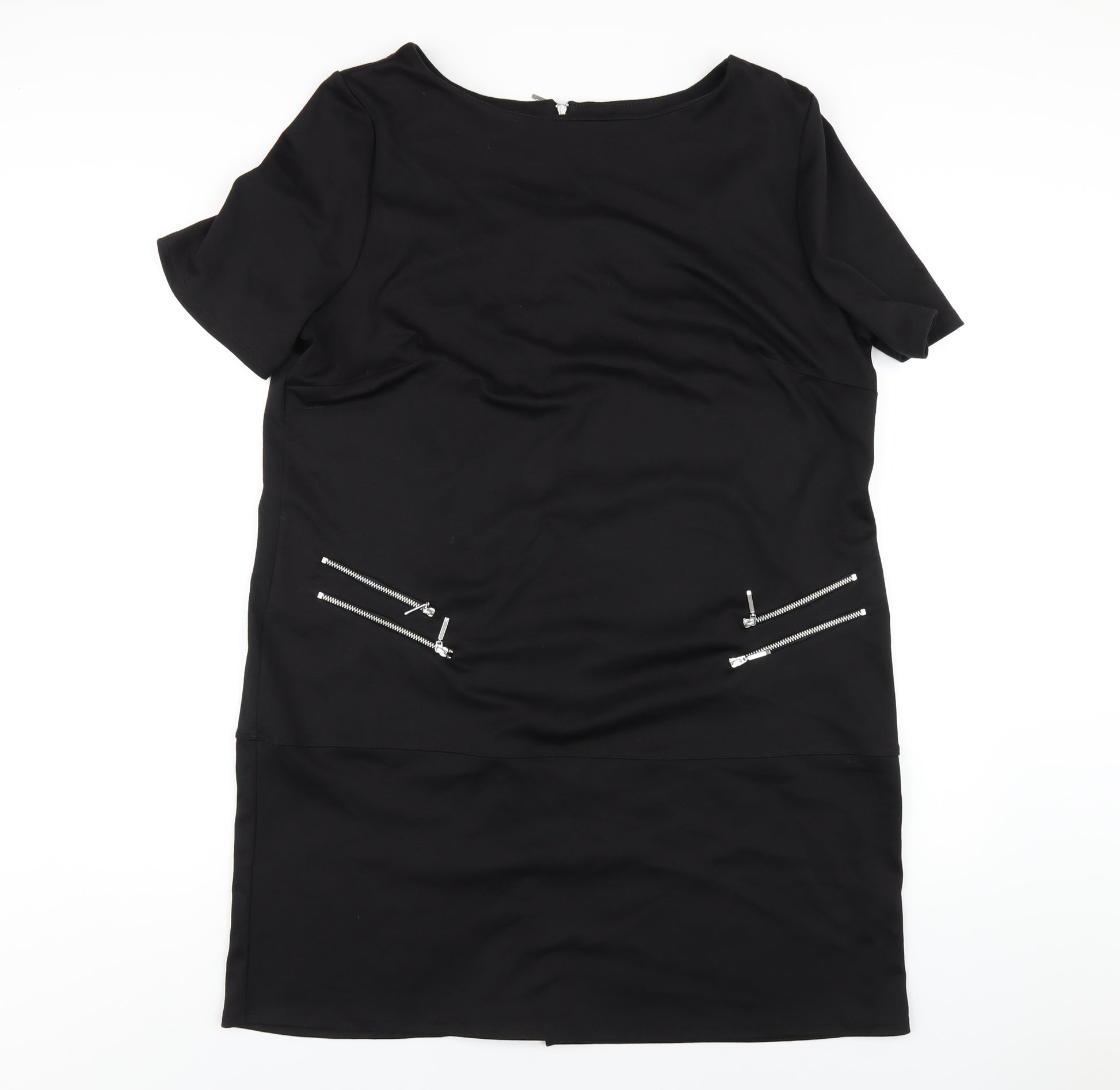 Womens Black Polyester A-Line Size 18 Round Neck Zip