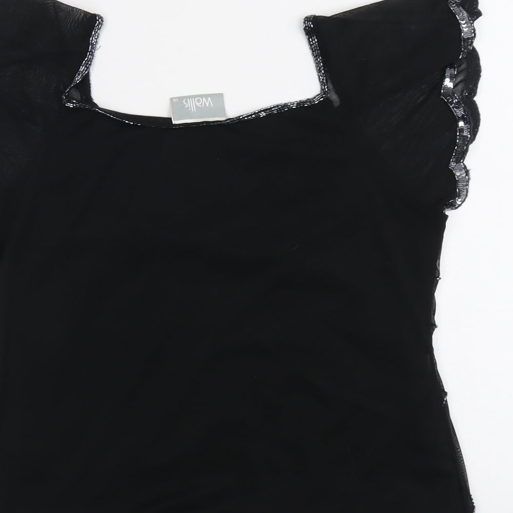 Womens Black Polyester Basic Blouse Size 14 V-Neck