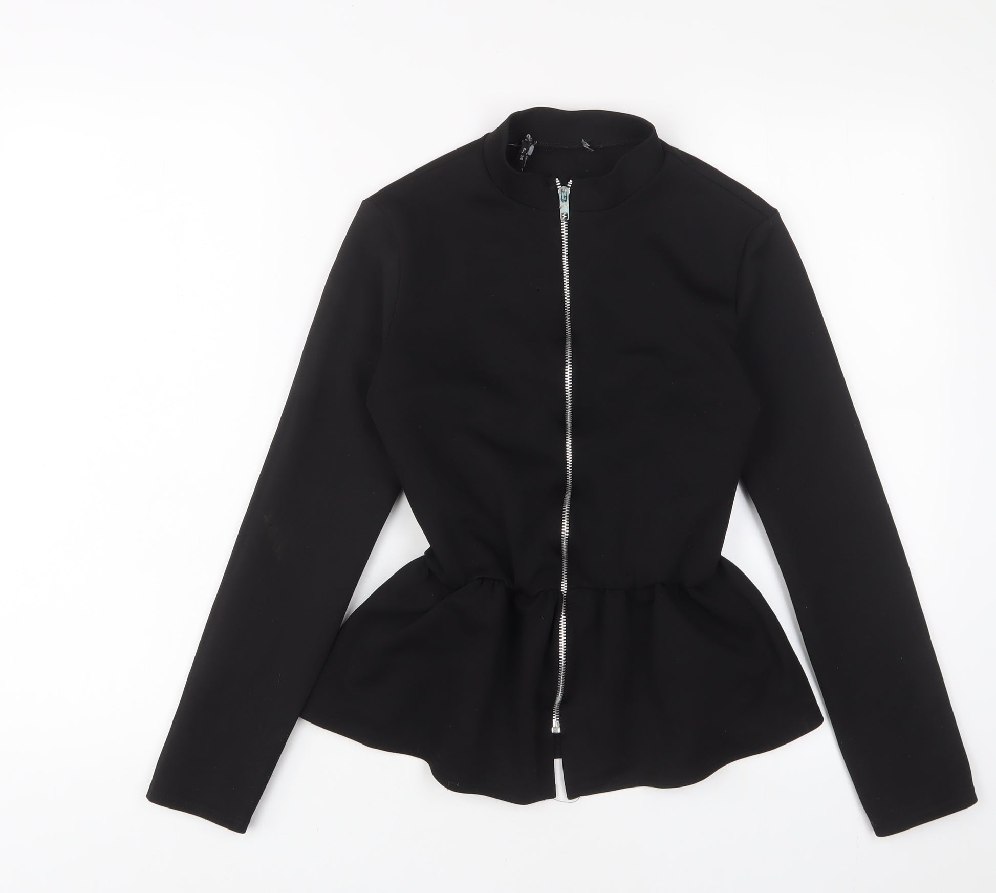 Womens Black Polyester Basic Blouse Size 8 Round Neck
