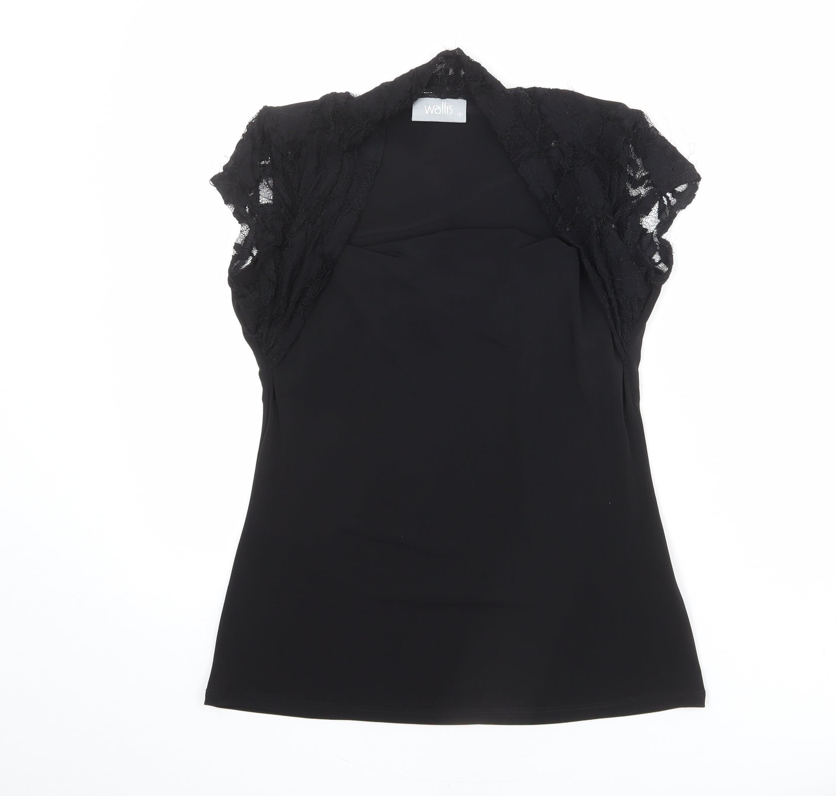 Womens Black Polyester Basic T-Shirt Size 12 Round Neck - Lace Details