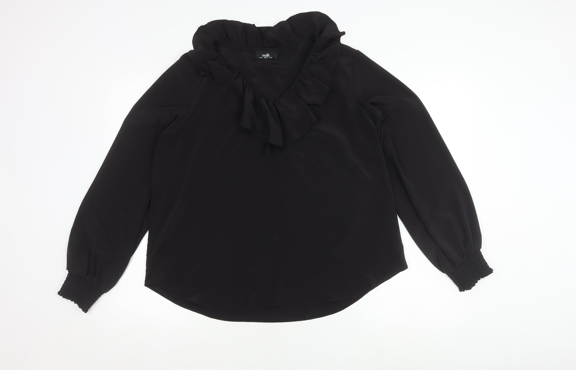 Regular price£9.25£925Regular priceUnit price / perSale price £9.25 GBPGallery Womens Black Ruffle Chiffon V-Neck Long Sleeve Blouse Size 14