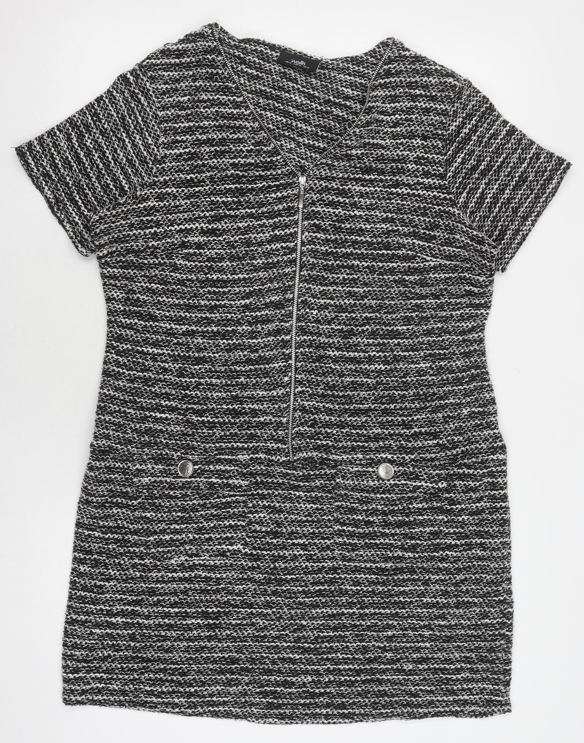Discover elegance and comfort with the Wallis Women's Black Shift Dress, a perfect addition to your autumn and winter wardrobe. With its timeless black knit fabric, this dress offers a minimalist aesthetic that's suitable for various casual occasions. The V-neckline adds a touch of sophistication, while the short sleeves provide ease of movement. The dress features a zip closure for a sleek finish and button accents that enhance its style. Made from a blend of polyester and cotton, it's lightweight yet cosy, making it ideal for the colder months. This shift dress is machine washable for convenience and ensures you look polished with minimal effort. Whether for a laid-back day out or a casual meeting, this dress is a versatile piece that promises comfort and effortless style.