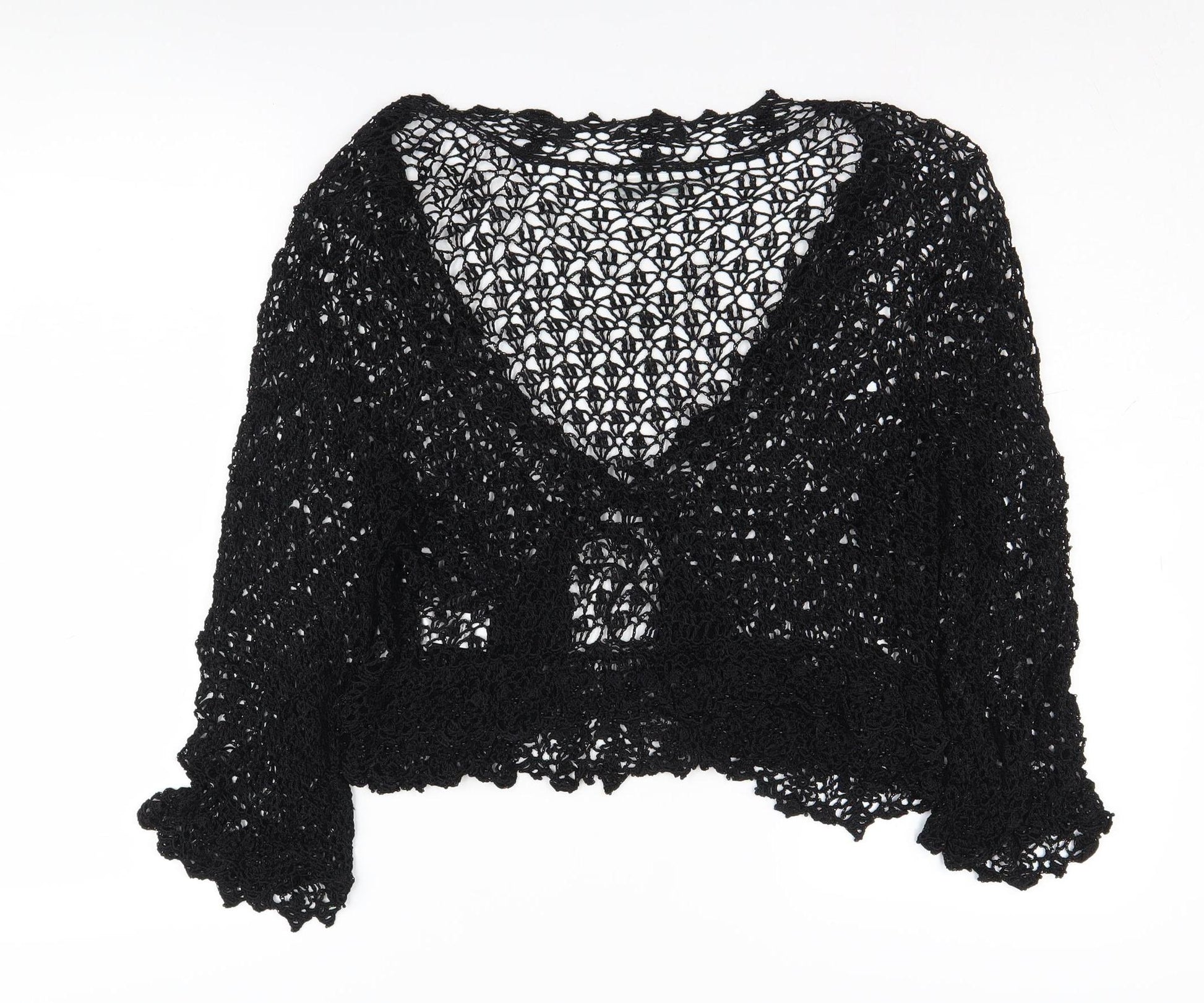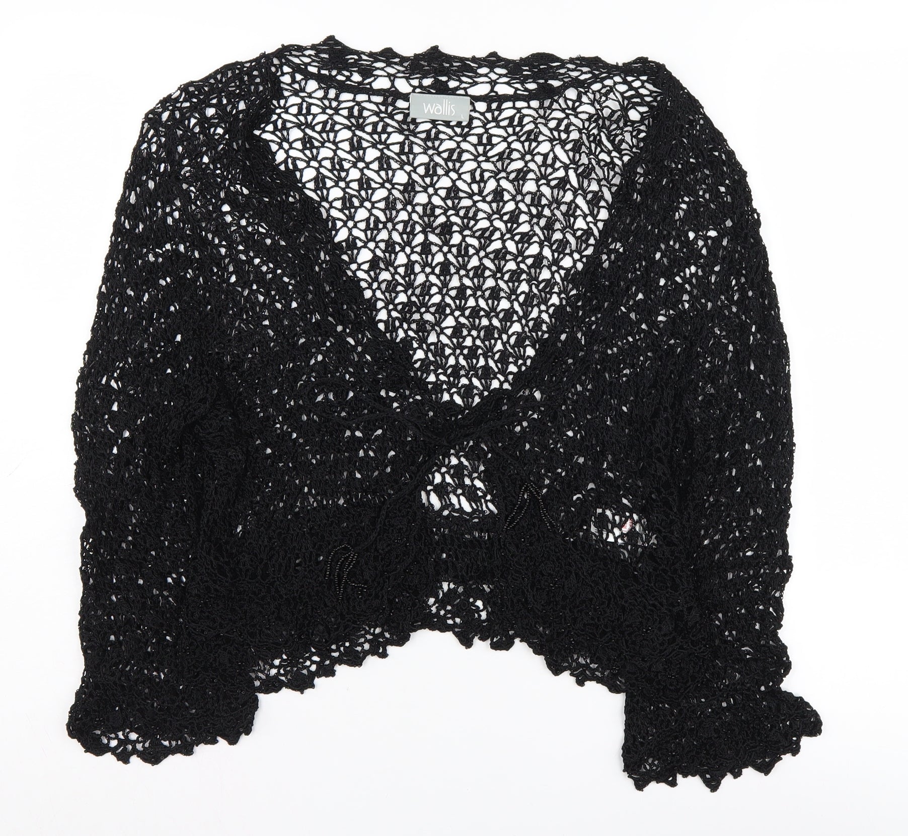 Elevate your outfit with this chic Wallis Women's Black Shrug, designed in a classic V-neck style that's perfect for layering. Crafted from soft and breathable crochet fabric, this open-knit shrug is made from 100% viscose, ensuring a lightweight feel that's ideal for any season. Its elegant black colour provides versatility, making it a staple piece in your wardrobe. Designed for women, this regular size L shrug features 3/4 sleeves for a fashionable touch. Whether you’re dressing up for a night out or adding a sophisticated layer for a casual day out, this Wallis shrug is sure to enhance your ensemble. Embrace the effortless style and pair it with dresses or tops for a seamless look. With its hand washable care, maintaining its exquisite condition is simple and convenient. Perfect for a variety of occasions, this shrug is a must-have for those who value style and comfort.